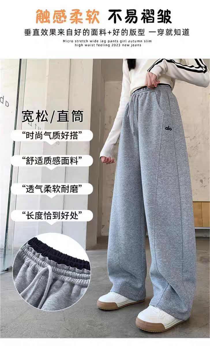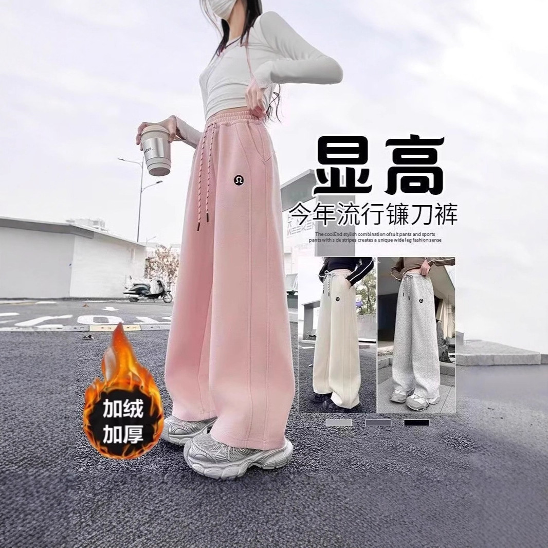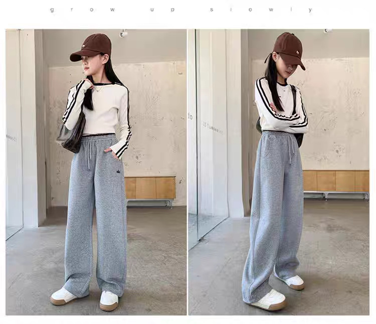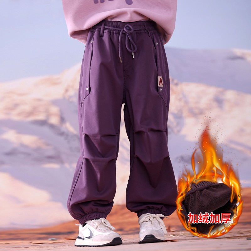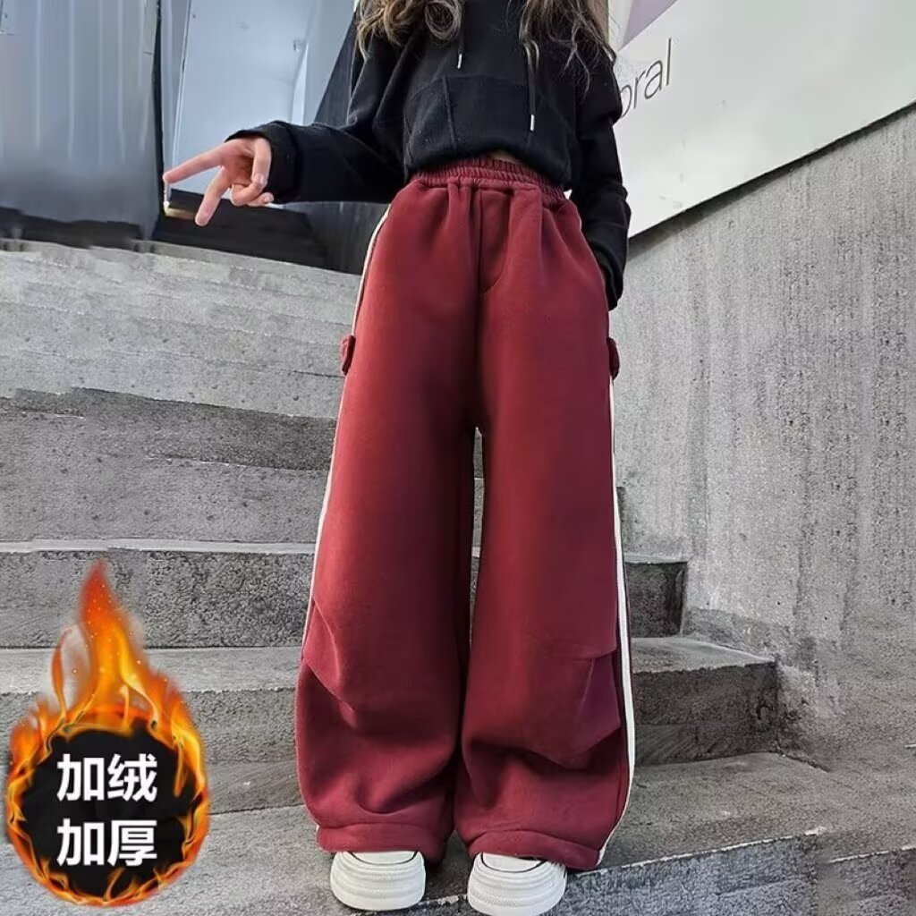 女童加绒裤子秋冬2025新款儿童休闲阔腿裤中大童运动直筒长裤
