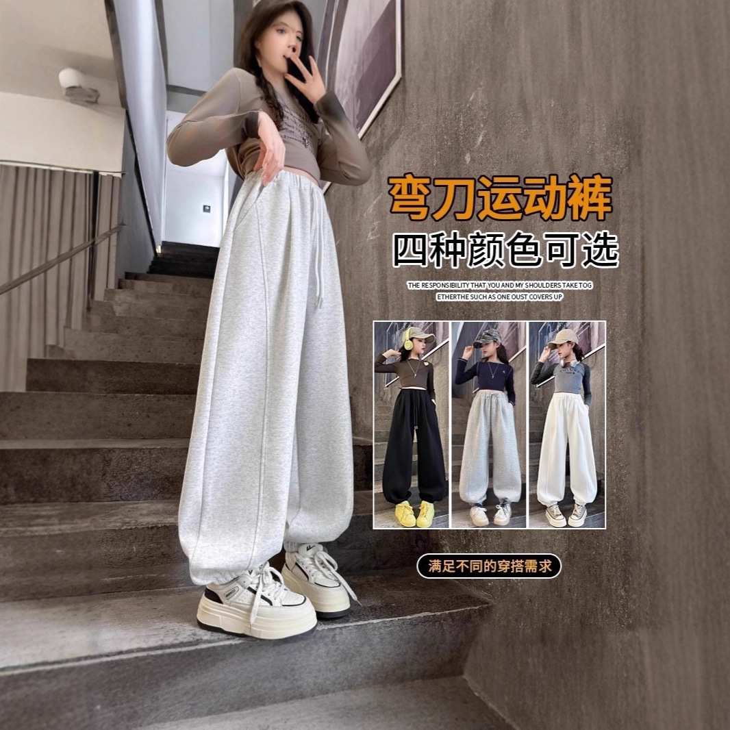 运动裤女童秋冬季2025新款初中生女孩裤子秋装大童休闲卫裤弯刀裤