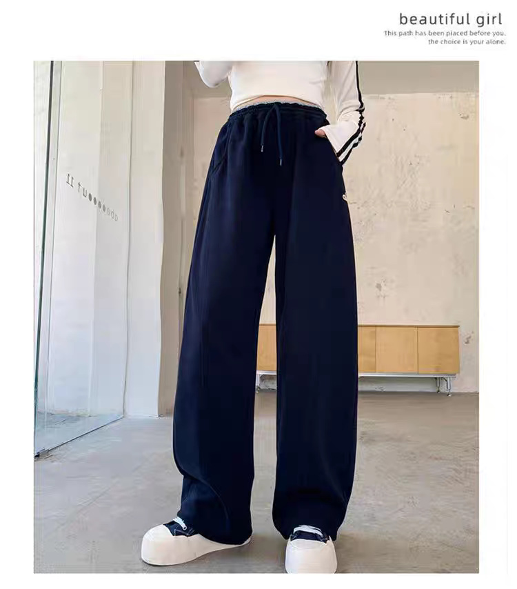 女童运动裤子秋冬阔腿儿童加绒大童卫裤初中生新款直筒装季黑色冬