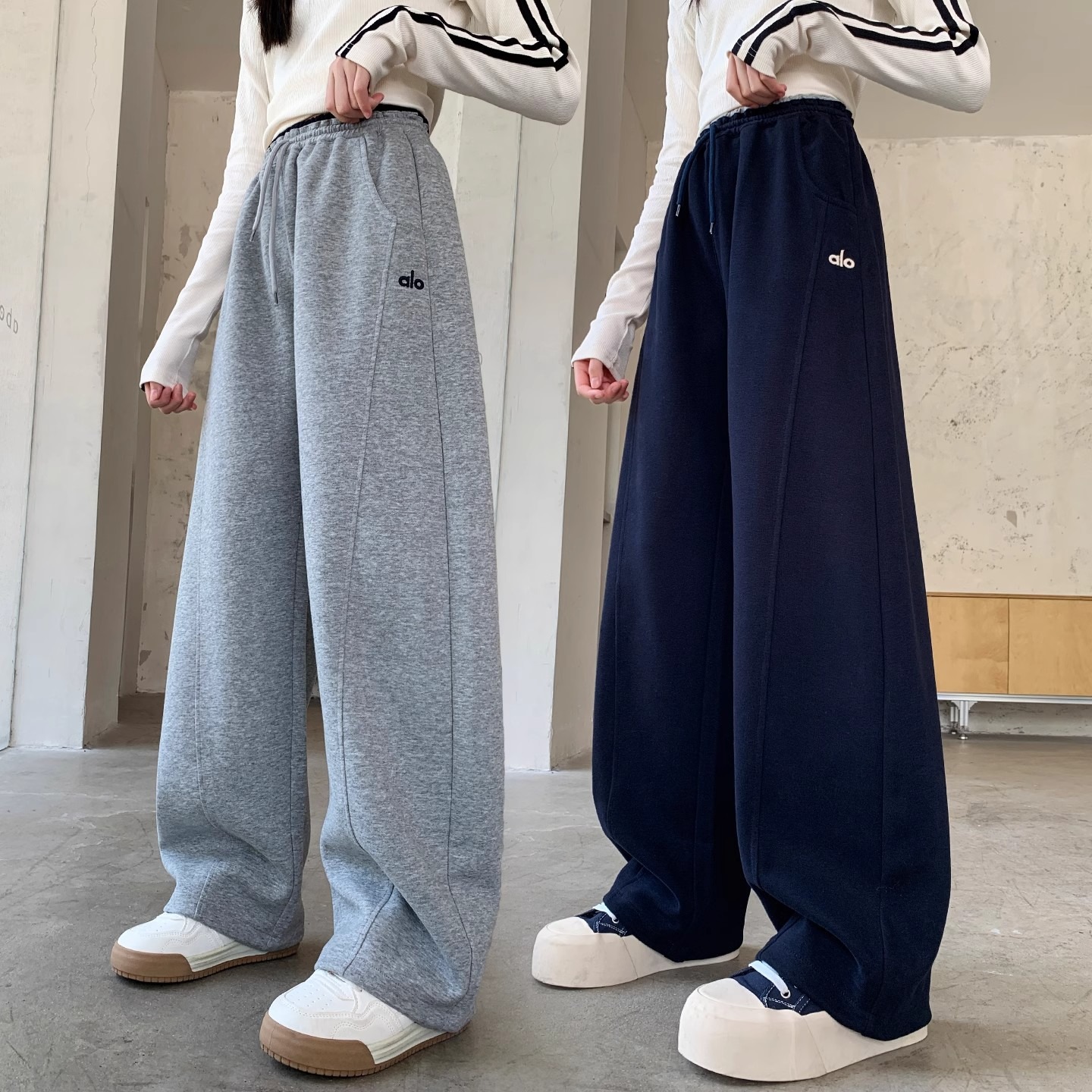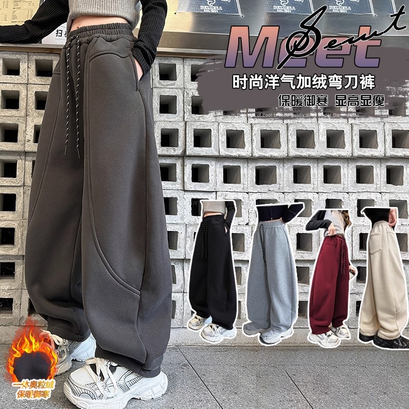 女童春秋裤子儿童运动卫裤加绒洋气2025新款弯刀加厚阔腿裤秋冬季