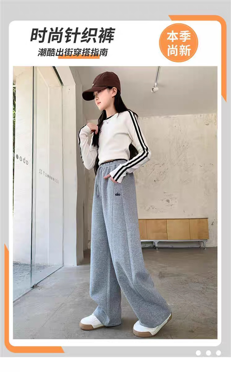 女童裤子秋冬款外穿2025新款儿童洋气运动直筒裤女大童针织休闲裤