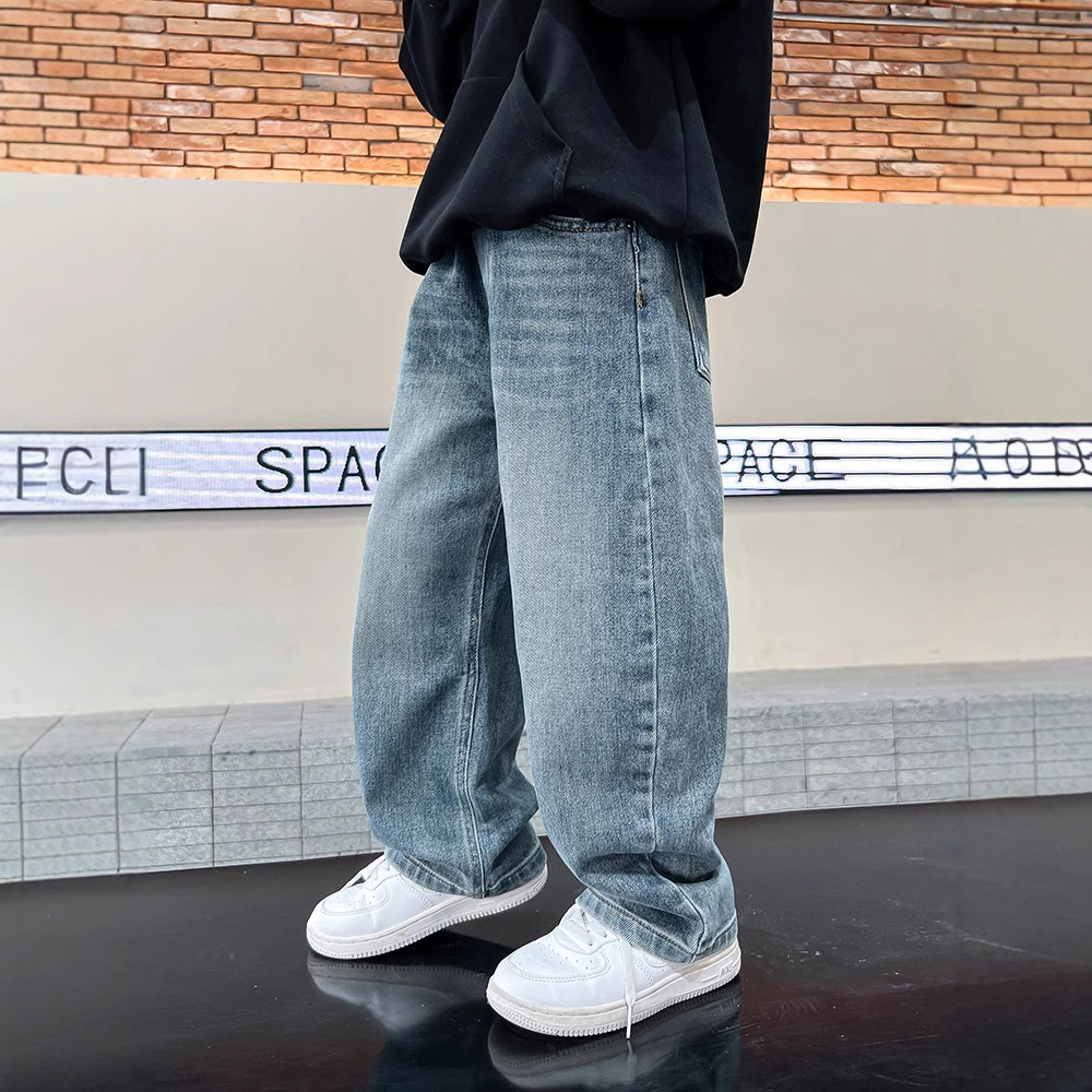 男児ジーパン春装2025新型中大童春秋男児ズボン子供服ズボン格好いい揚げ街