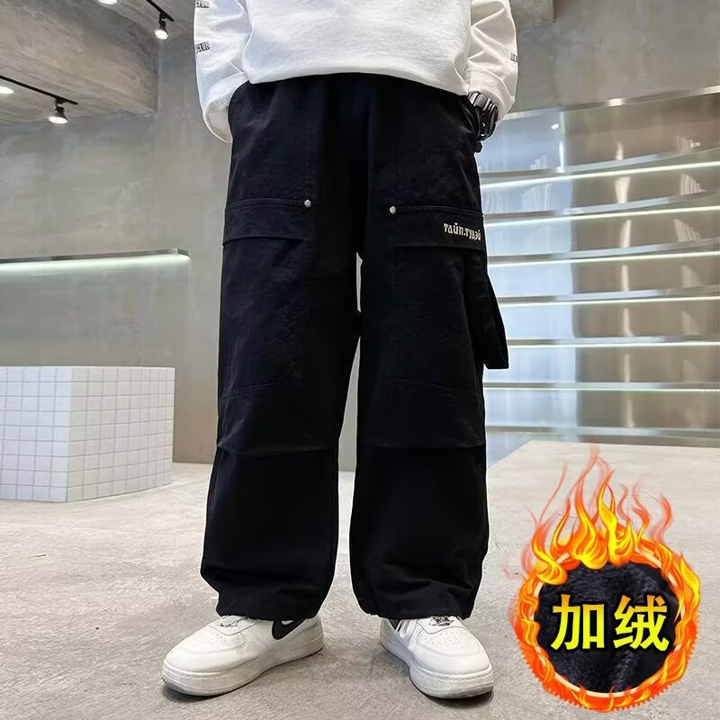 男児ズボン秋冬金2024新型児童直筒カジュアルパンツとベルベット大童秋工装ズボンのごろつきがかっこいい