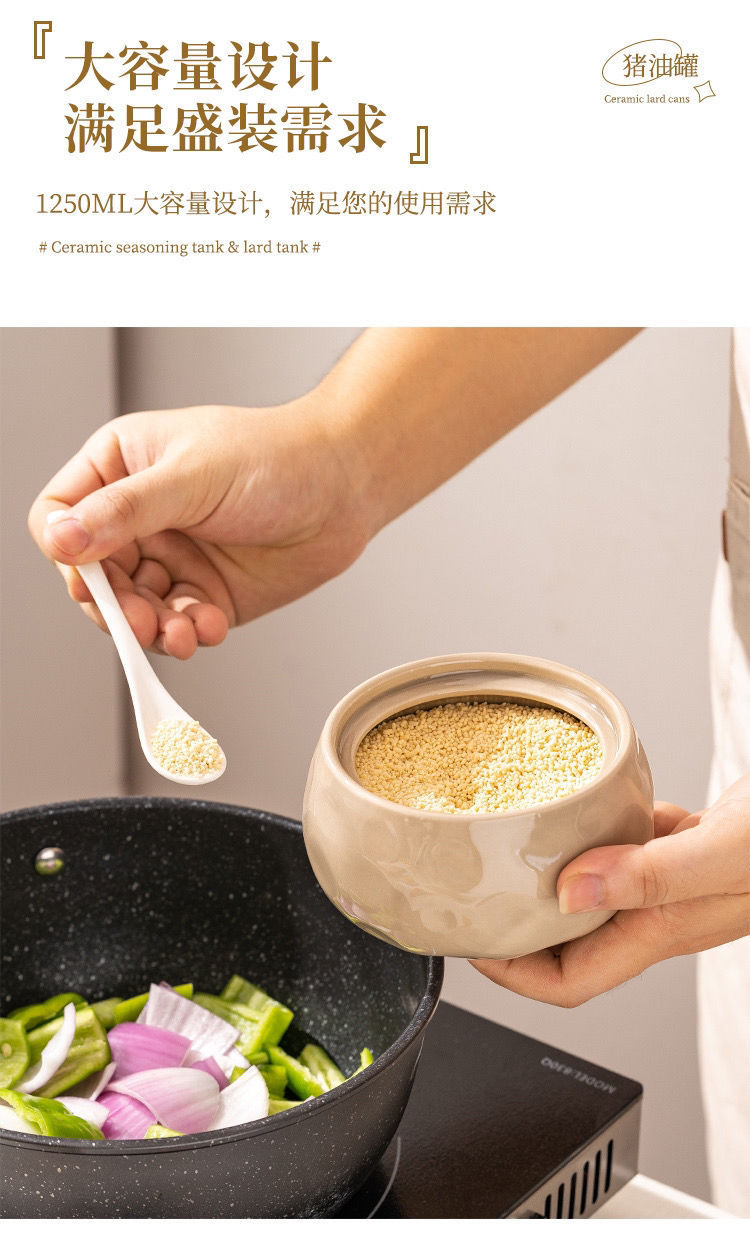 辣椒油陶瓷罐装猪油调味罐带盖大容量耐高温家用盐糖罐厨房组合