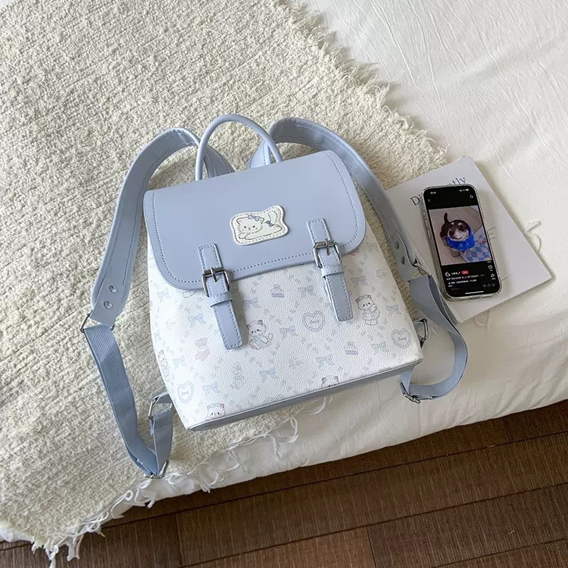 韩版复古豹纹kt猫双肩包包女小众设计卡通可爱手提单肩包百搭背包