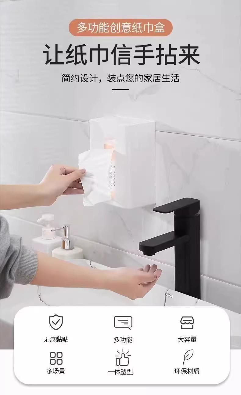壁挂式纸巾盒挂壁倒挂收纳抽取家用客厅厨房卧室卫生间免打孔无痕