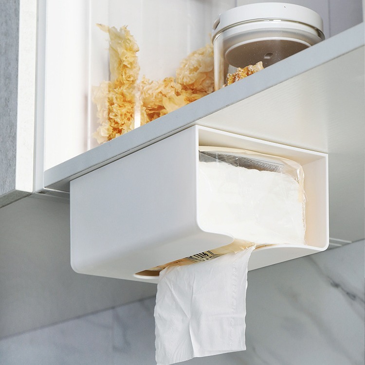 厨房卫生间下抽纸盒收纳架塑料壁挂无痕粘贴餐巾纸纸巾盒壁挂式