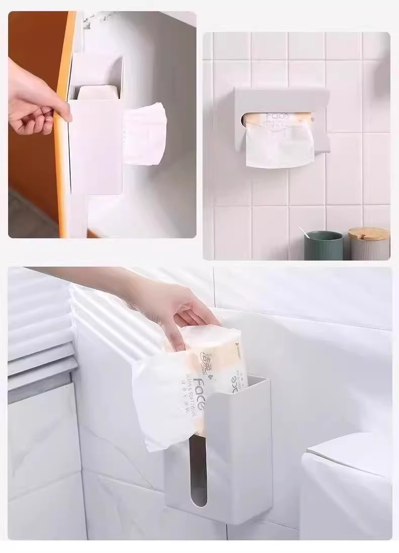粘着ティッシュボックス、シンプルでファッショナブル、パンチフリーティッシュボックス、壁掛けトイレットペーパーティッシュボックス、多機能