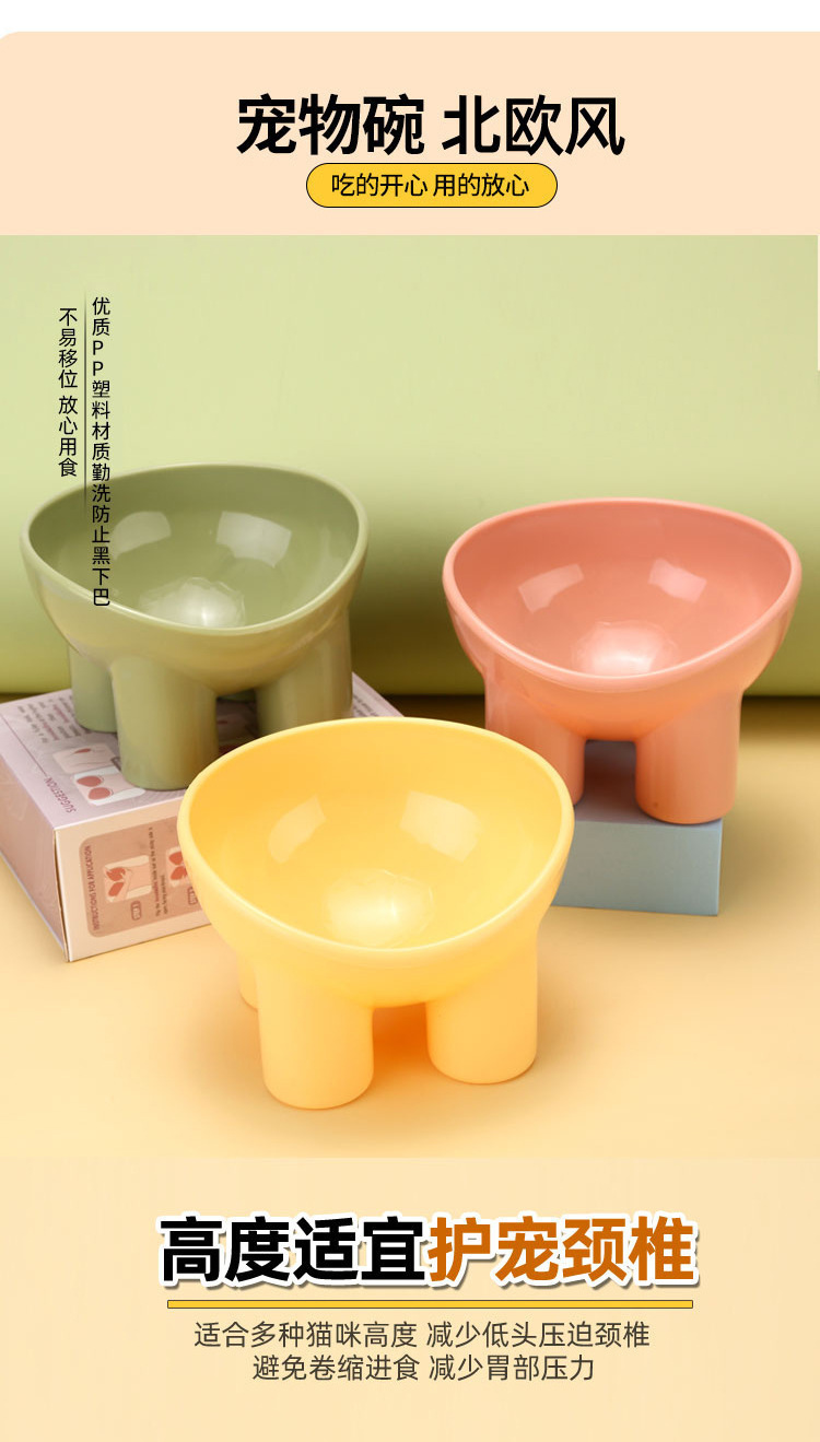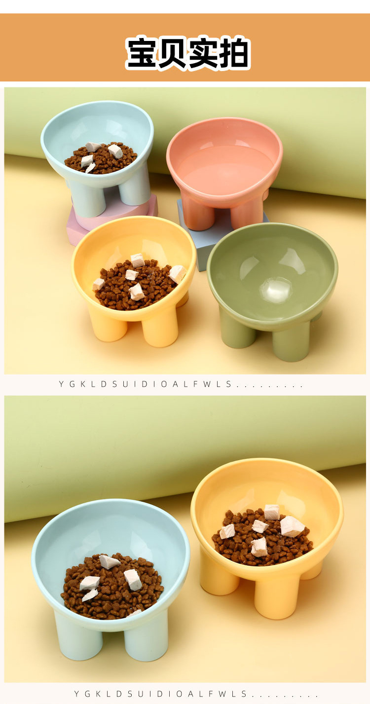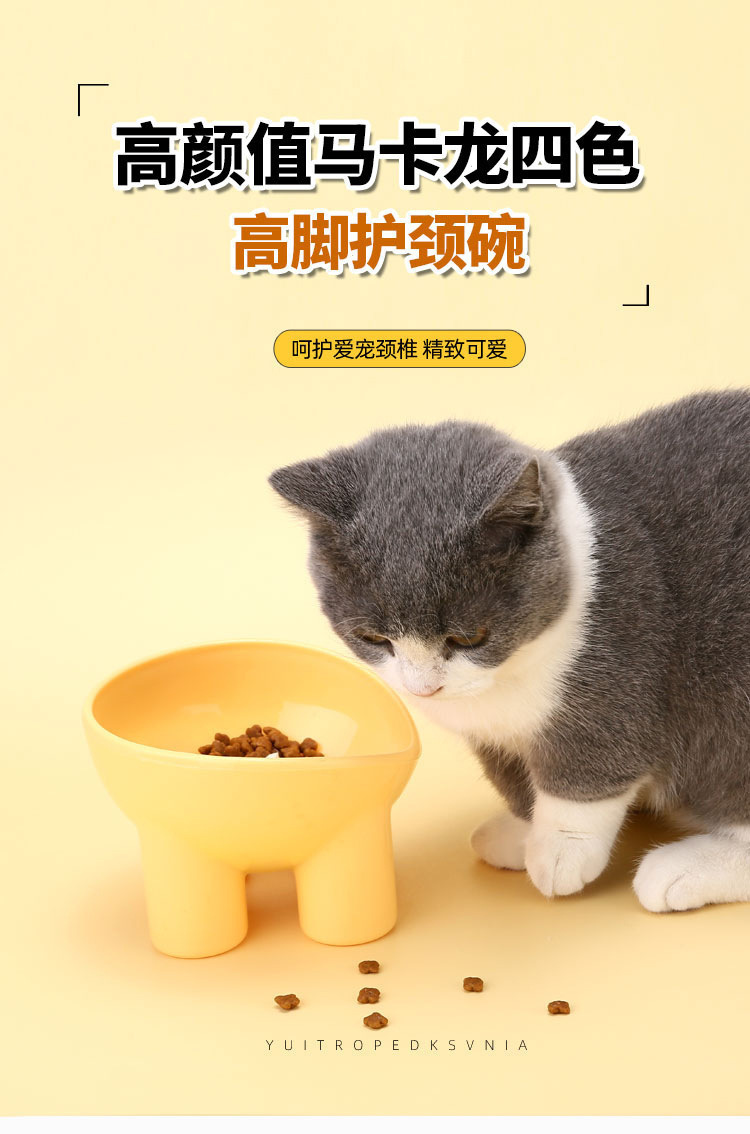 宠物碗猫碗象腿护颈猫咪饭碗高脚斜口盘子猫粮盆饮水碗狗粮用