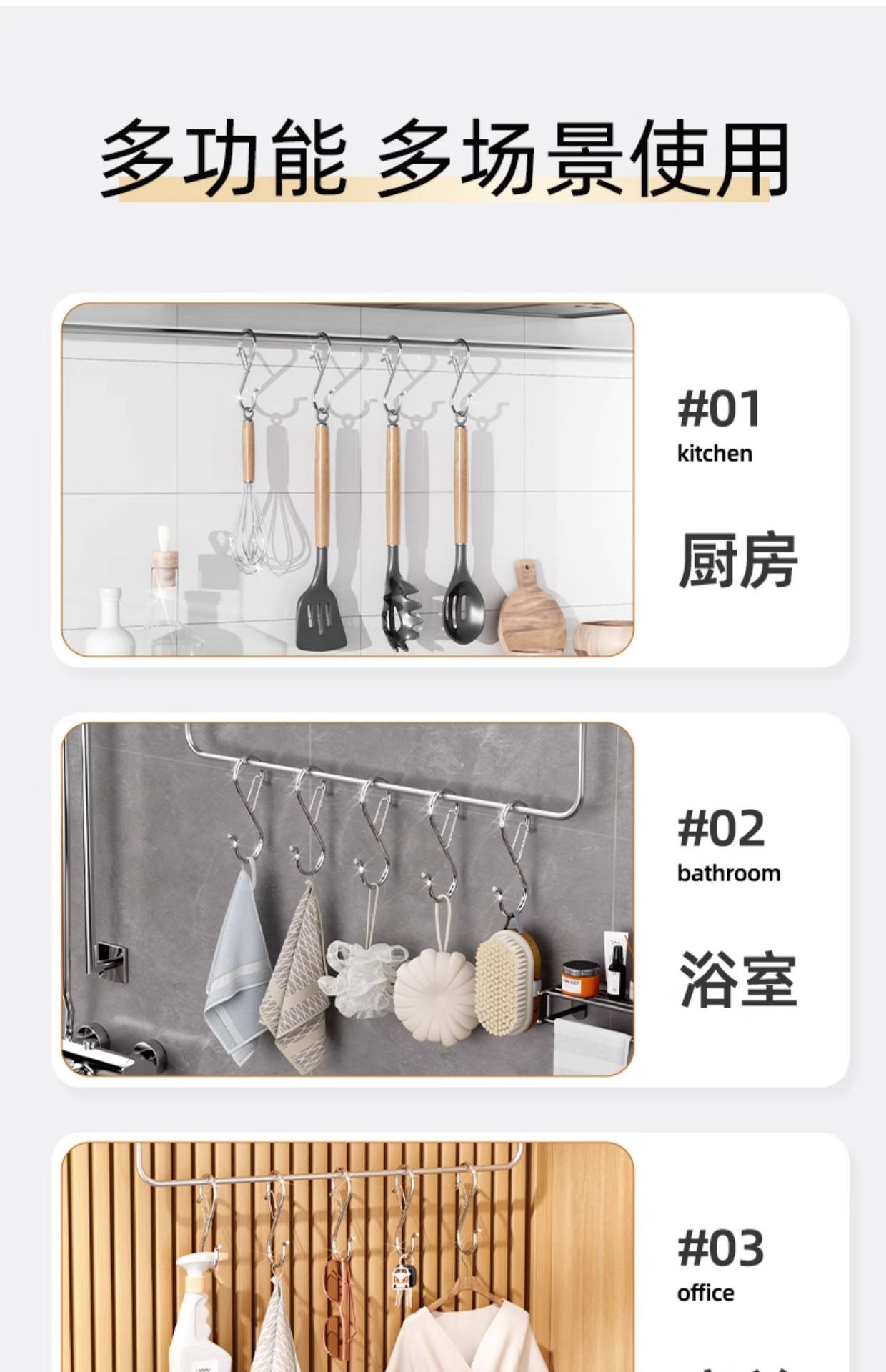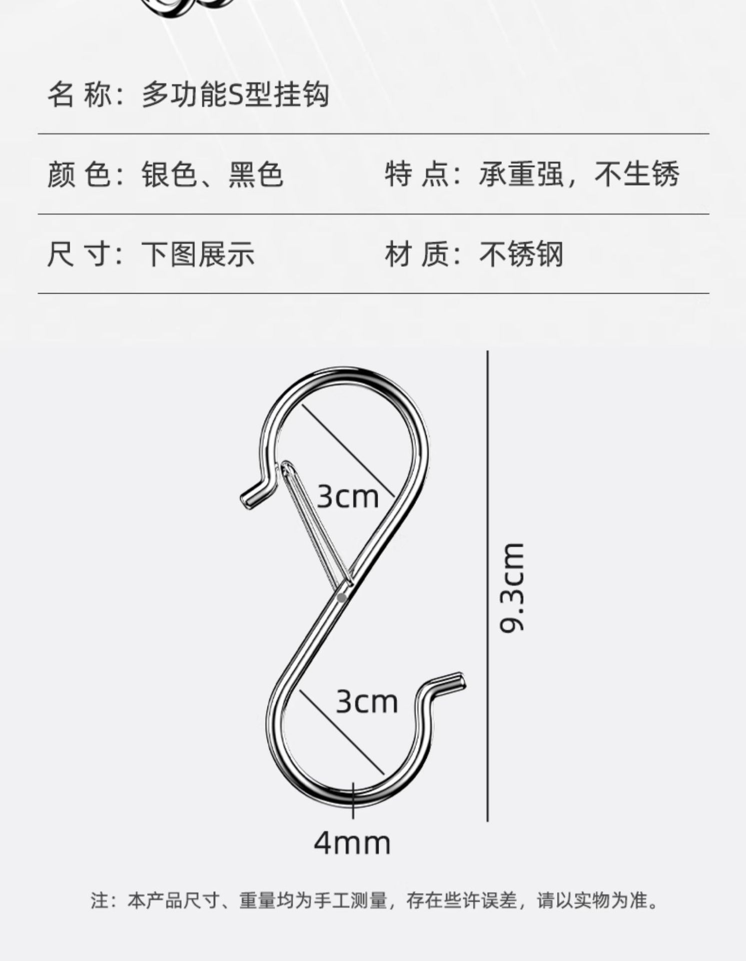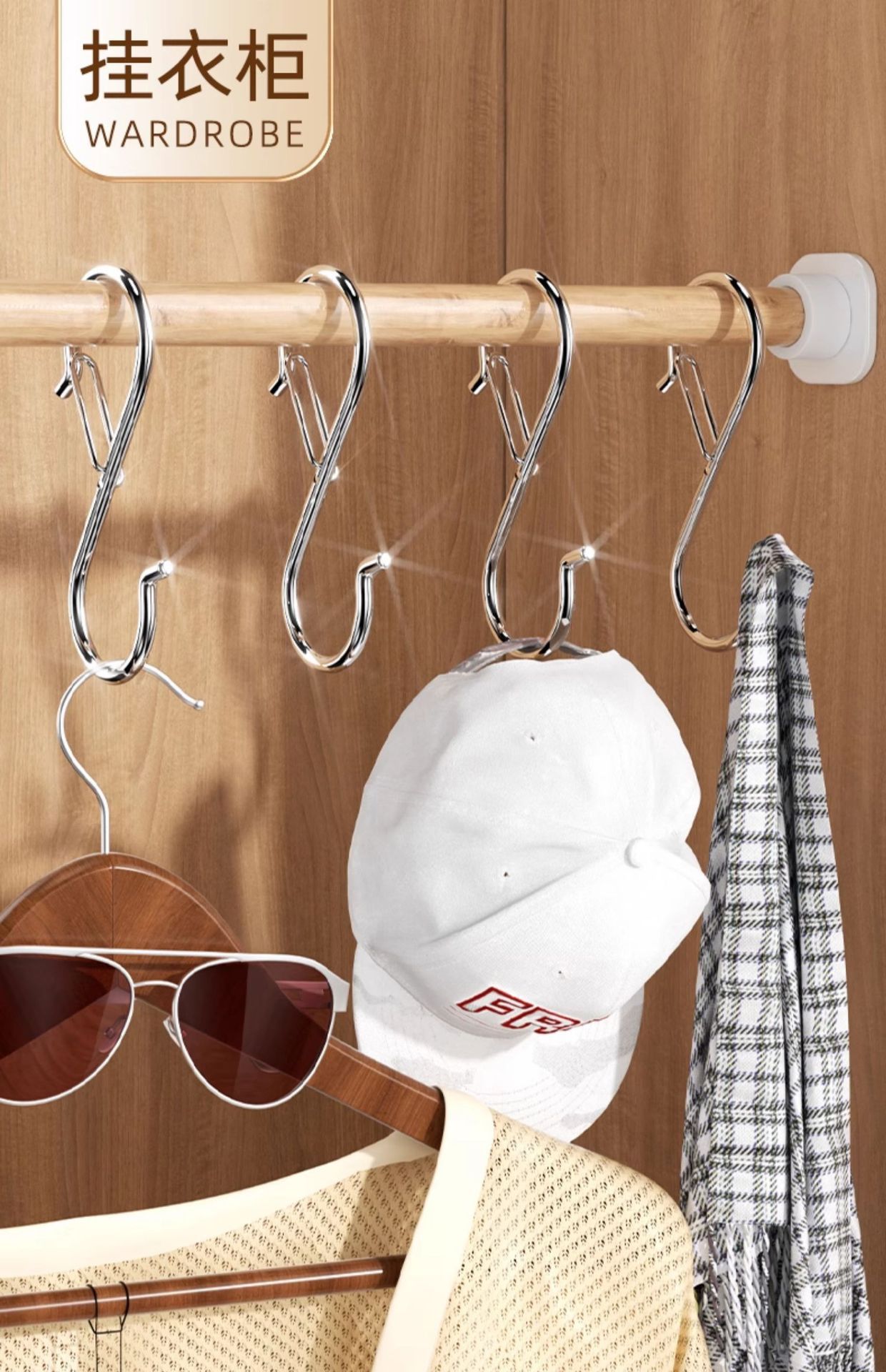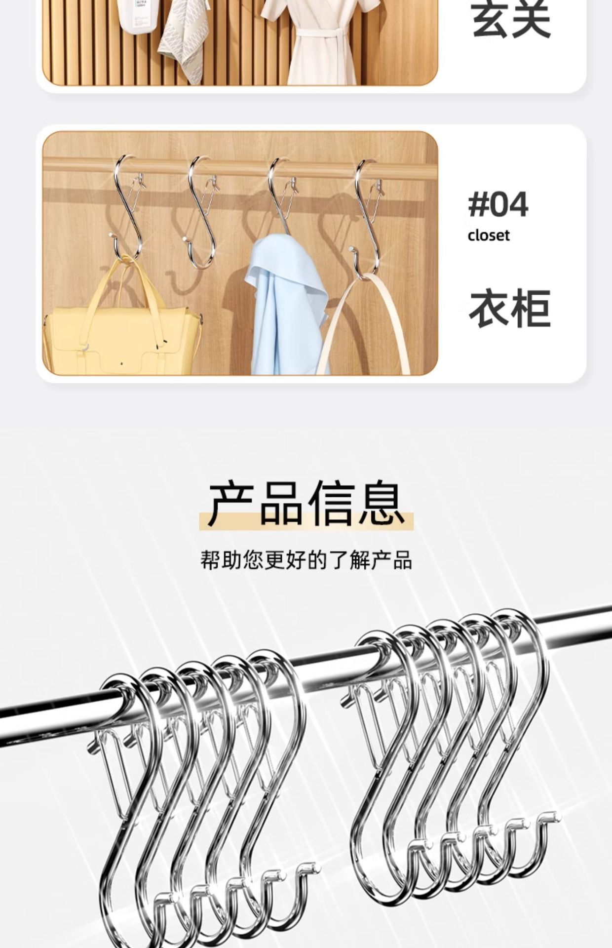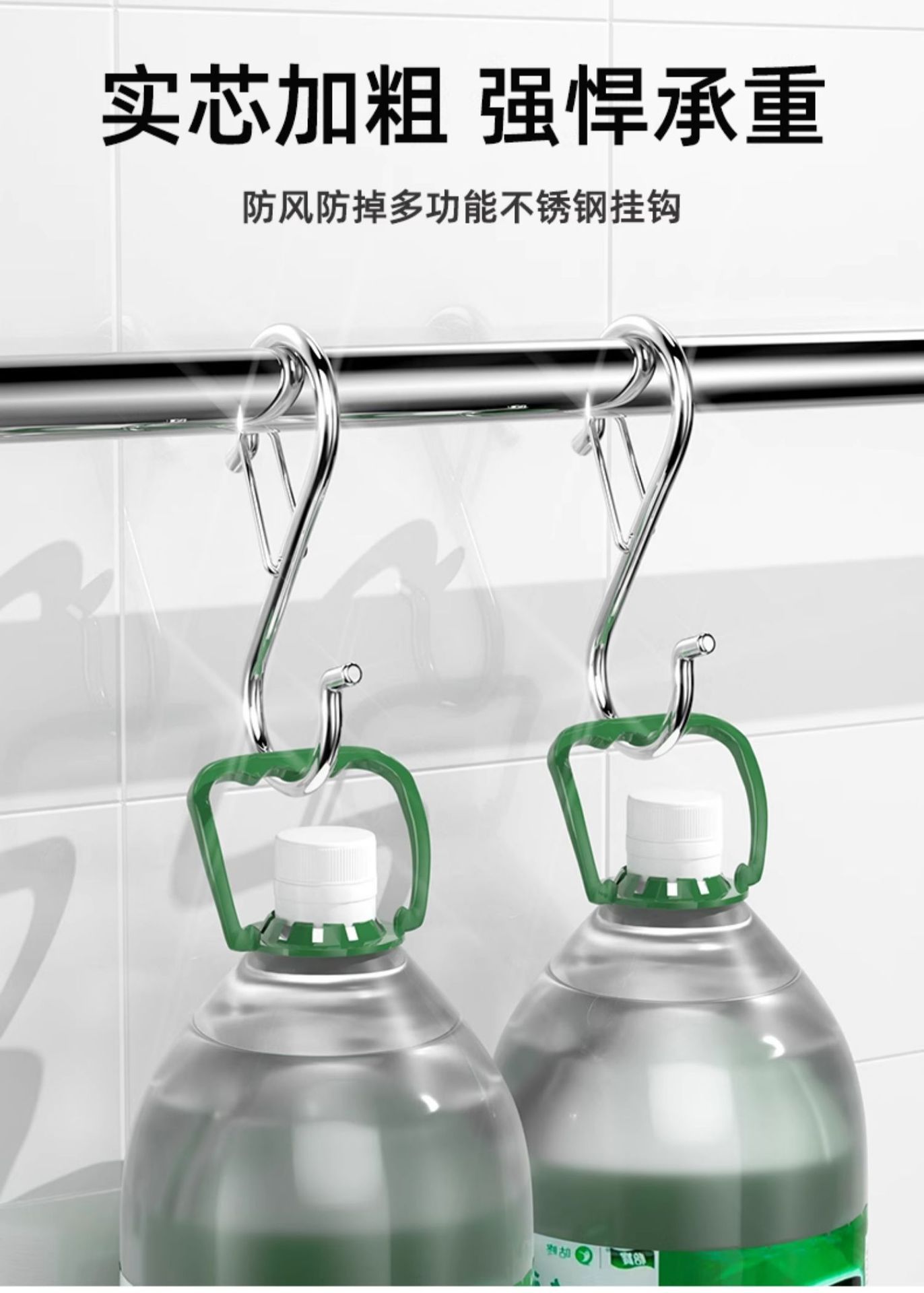 防风不锈钢S型挂钩免打孔吊钩厨房卧室挂衣勾子晒挂腊肉收纳神器