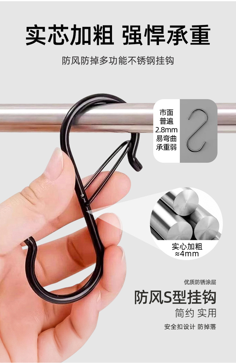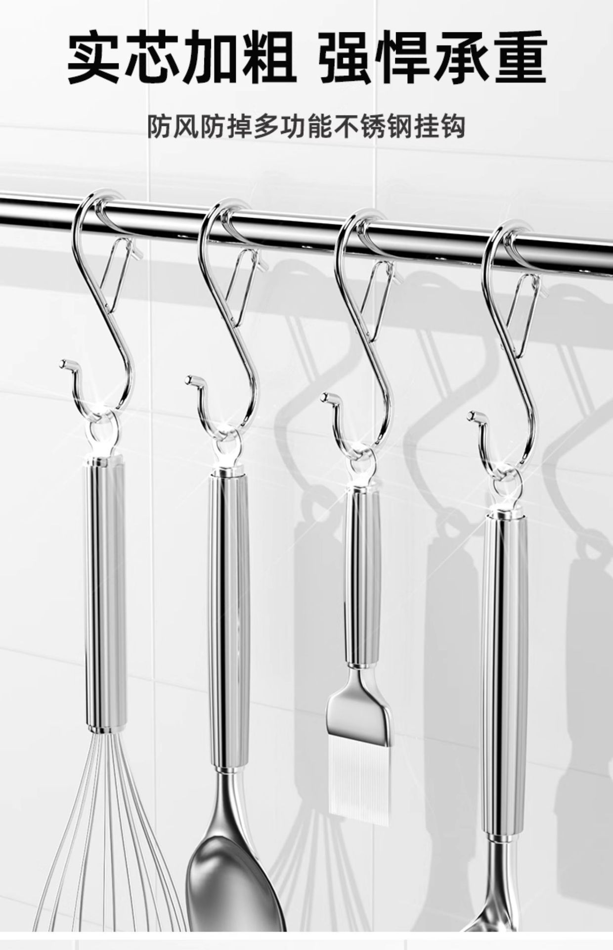 防风不锈钢S型挂钩吊钩厨房勾子晒挂收纳神器多功能家用防掉承重