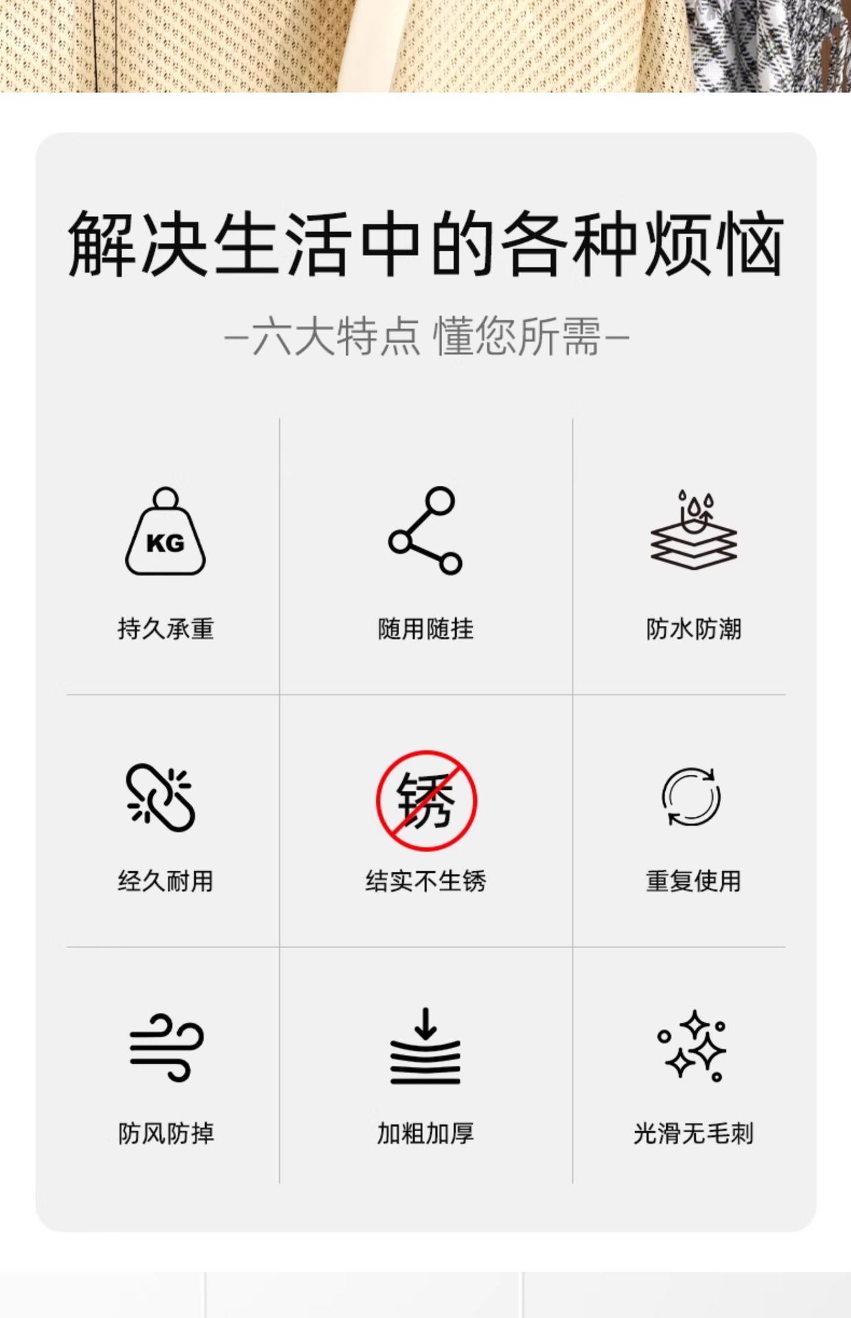 フック、パンチフリーフック、ワードローブバッグ、帽子落下防止フック、防風収納フック、スプリングバックルSフック
