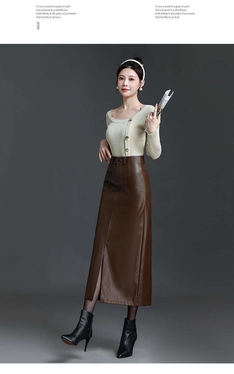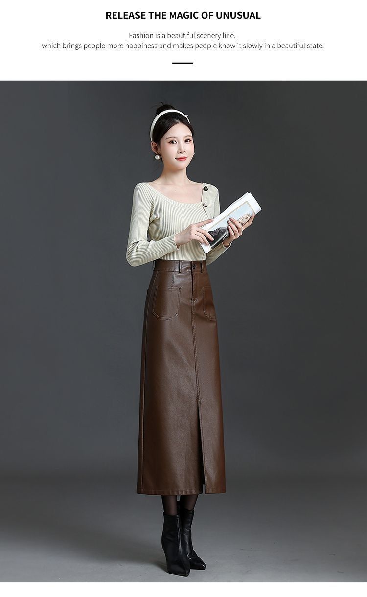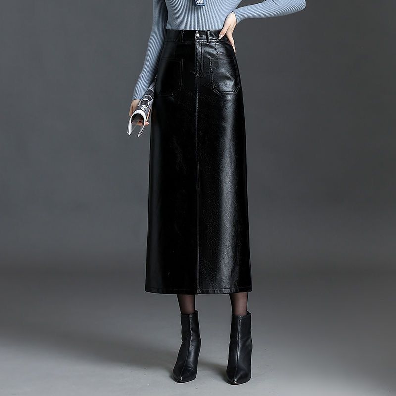 2024秋冬季高腰直筒半身裙女韩版时尚大码PU皮裙长款显瘦百搭裙子