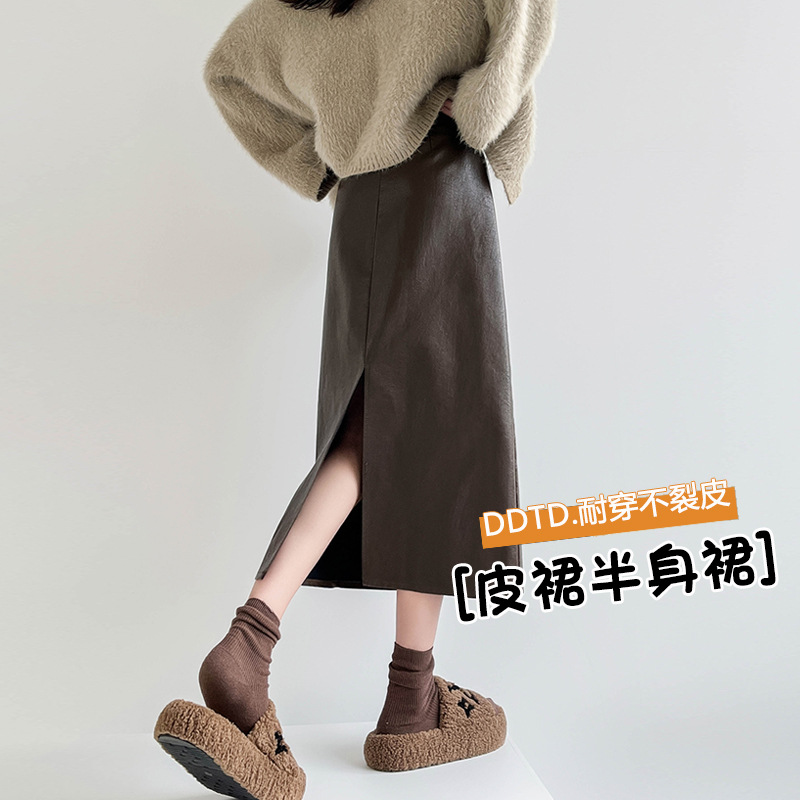 春秋冬季裙子2025新款pu皮裙半身裙高腰中长款直筒一步包臀裙长裙