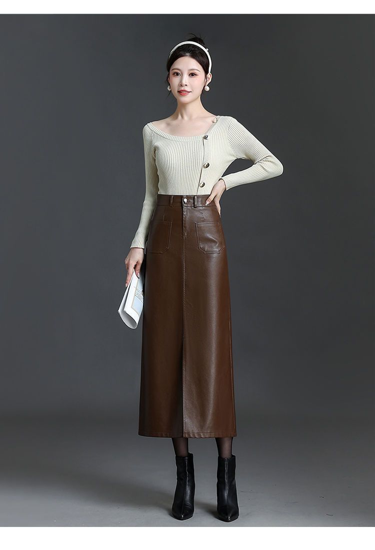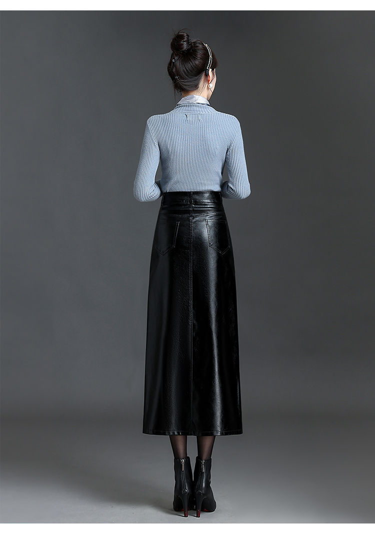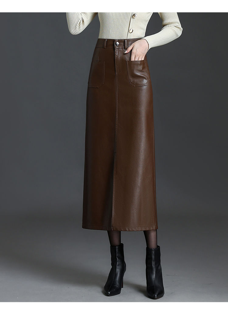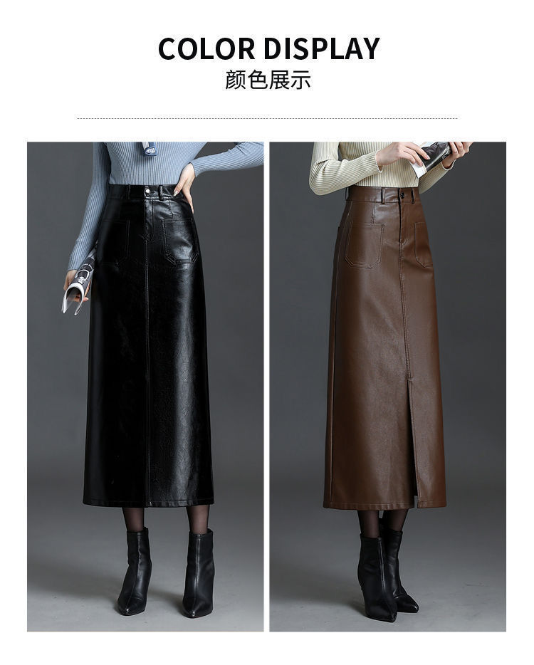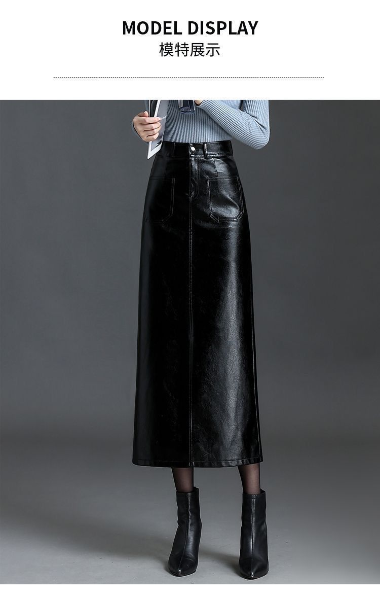 2025秋冬加绒半身皮裙时尚高腰显瘦显高舒适亲肤加厚保暖包臀裙