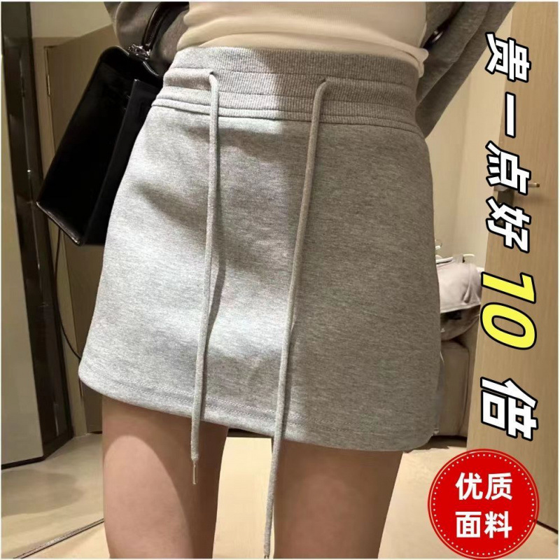 大きいサイズの太ったmmの灰色の半身のスカートの女性の春の夏の衛のスカートはひもの高い腰のギャルのa字が腹を覆ってお尻の短いスカートを包みます。