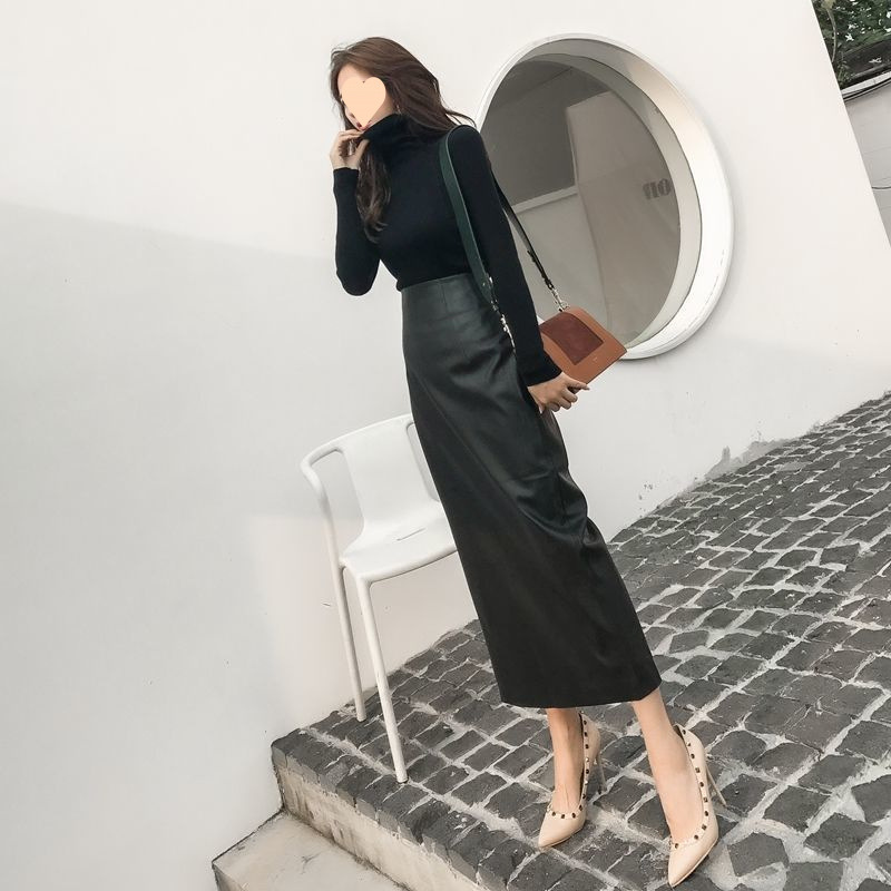 2025秋冬季高腰直筒半身裙女韩版时尚大码PU皮裙长款显瘦百搭裙子