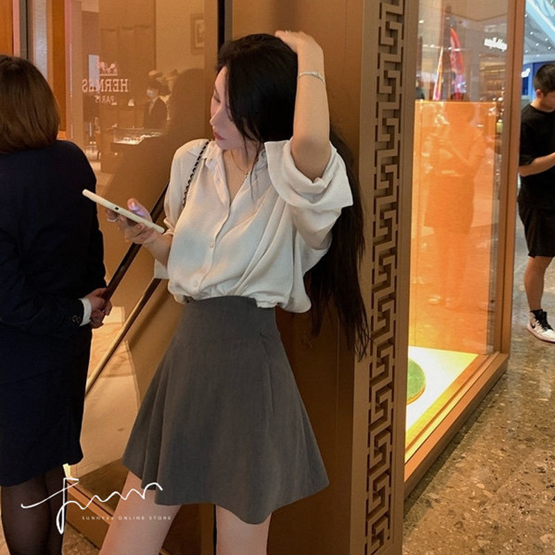 ヒップカバーショートスカート韓国風多用途スリムハイウエストAラインスカートレディーススーツスカート2025年夏新スタイル