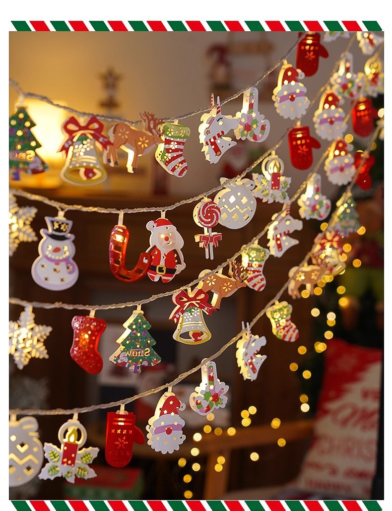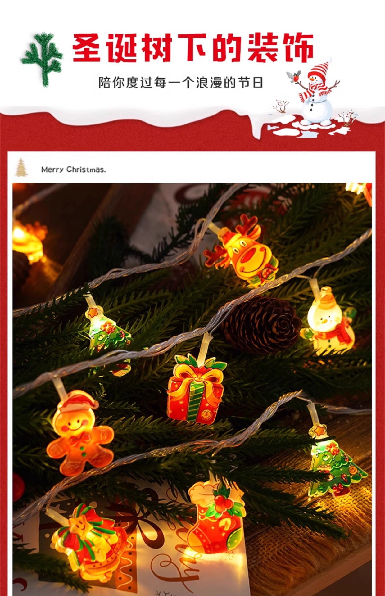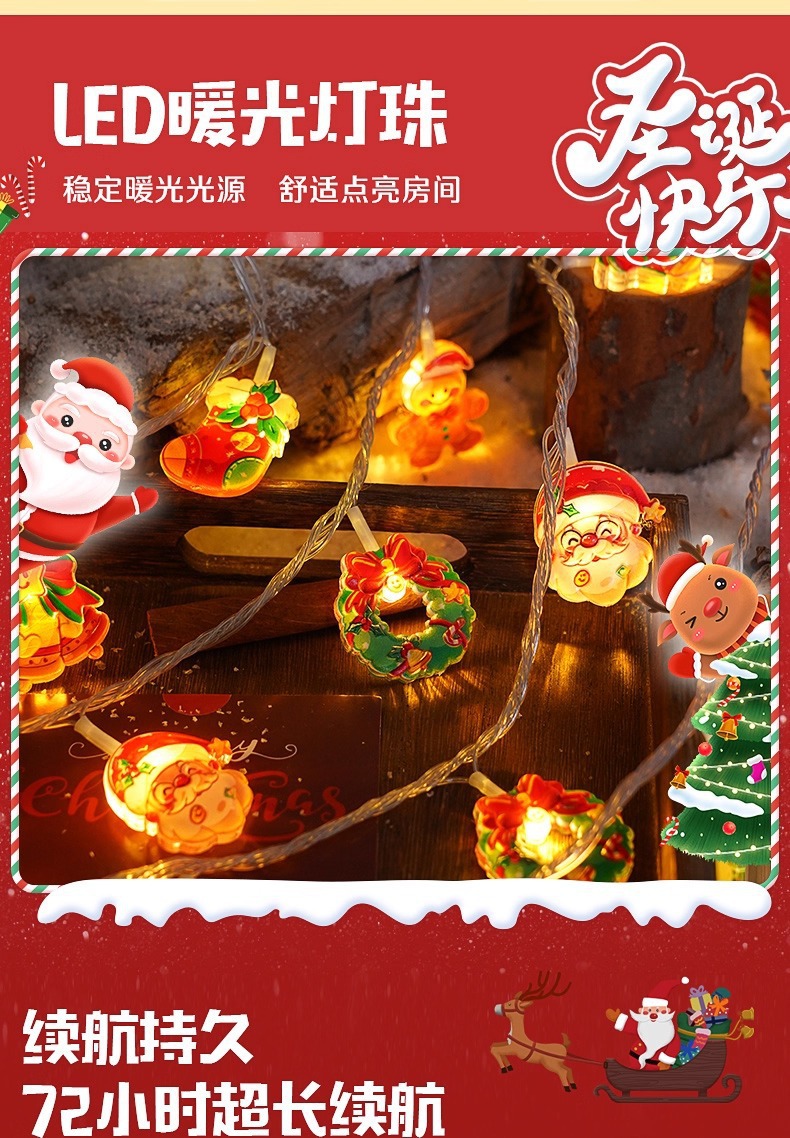圣诞节装饰灯串圣诞树挂件暖光亚克力雪人布置道具老人麋鹿彩灯串