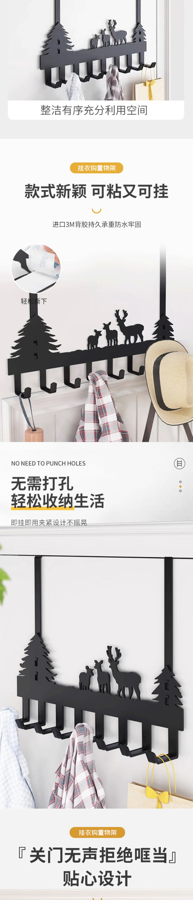 门后挂钩衣架免打孔卧室高门上衣服挂衣钩门口门背式加厚无痕挂钩