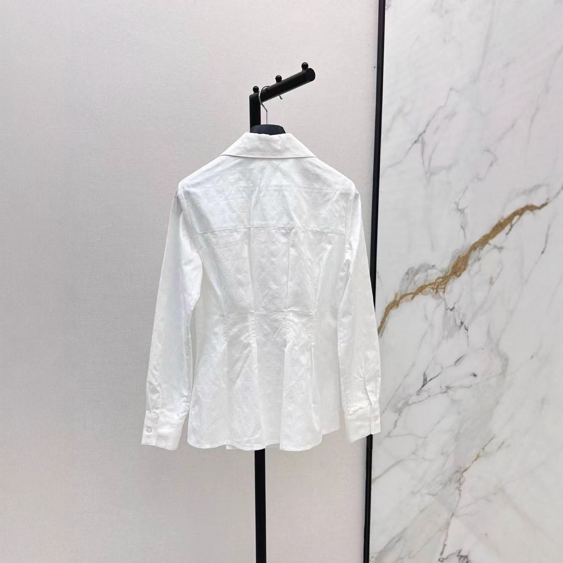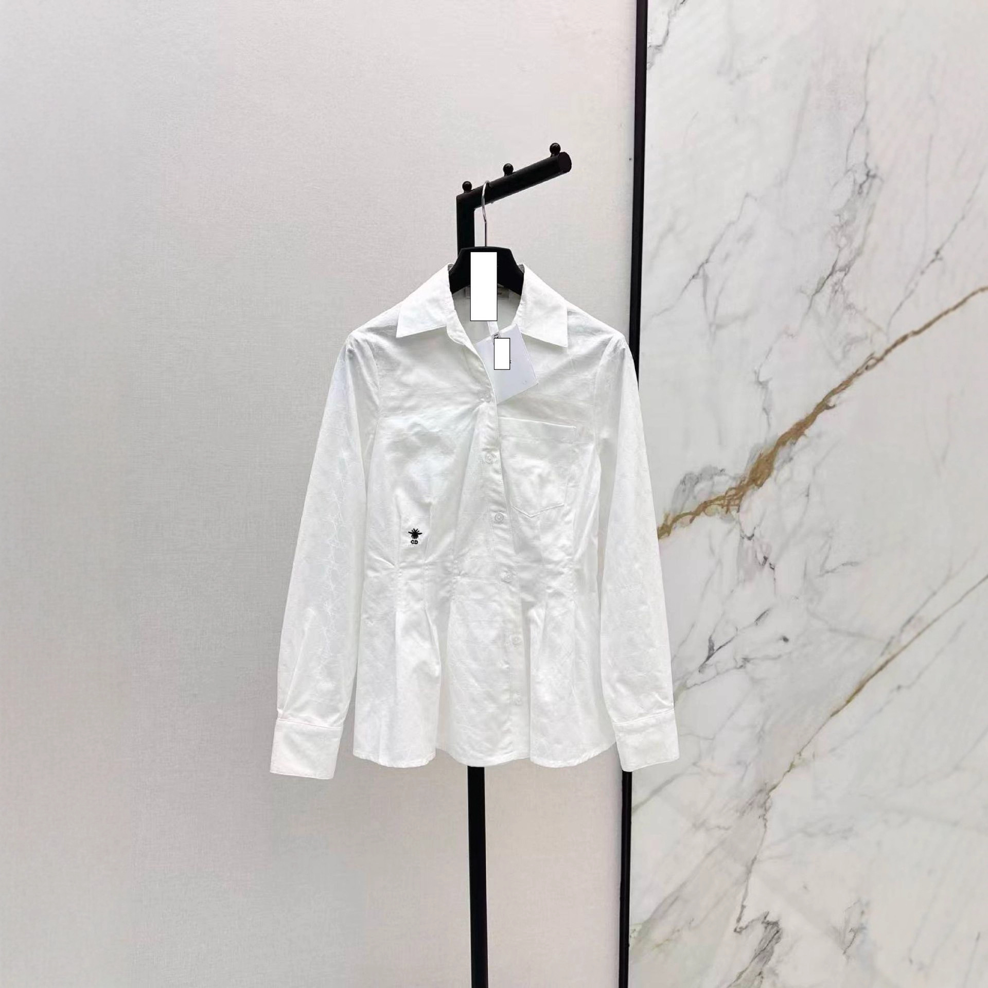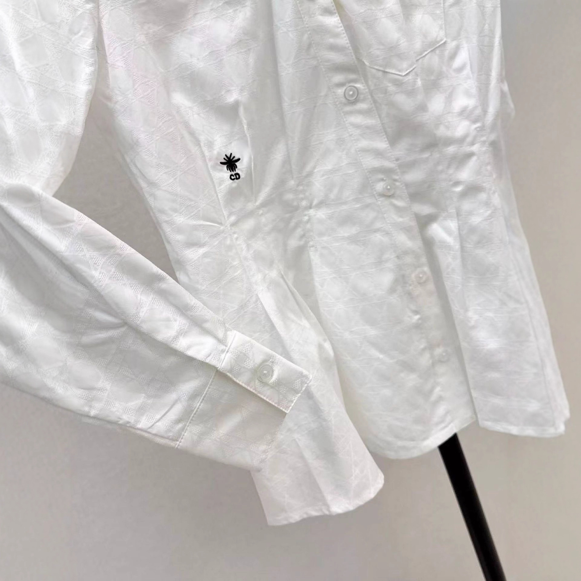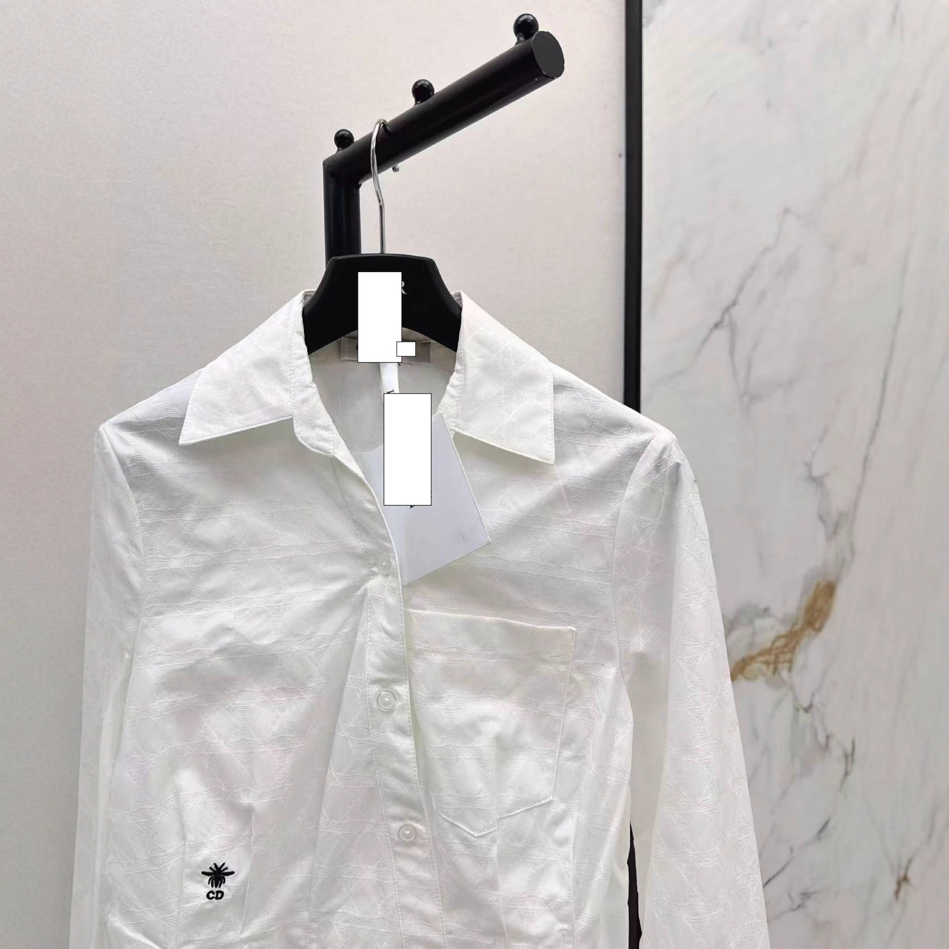 深圳南油2025春夏优雅气质CD气质提花菱格纹纯棉面料收腰衬衫