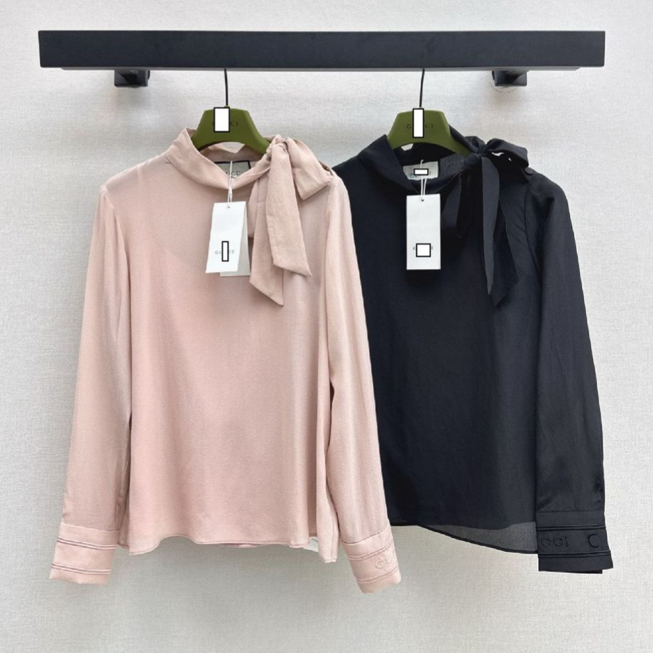 深圳南油2025春夏少女优雅气质飘带侧扣领结设计优雅飘带真丝衬衫