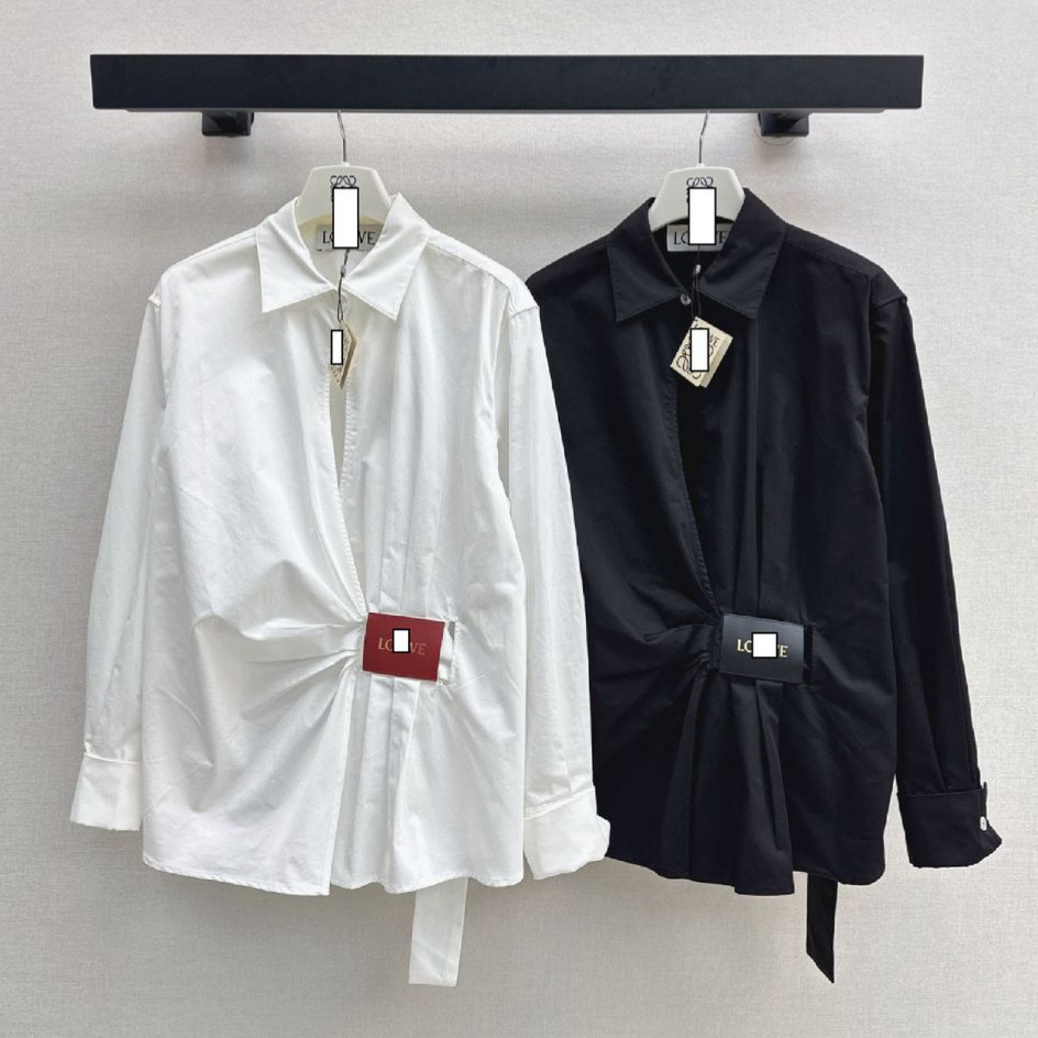 深圳南油2025春夏宽松版型翻领褶皱设计Logo皮版装饰衬衫休闲百搭