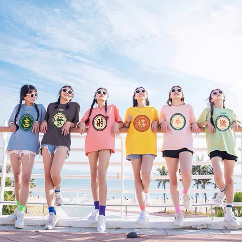 2024年、お金持ちで幸せな人生を送ります。親友、姉妹、カップルのためのトレンディな服、女性用純綿半袖Tシャツ、クラスユニフォーム、グループ親友服。