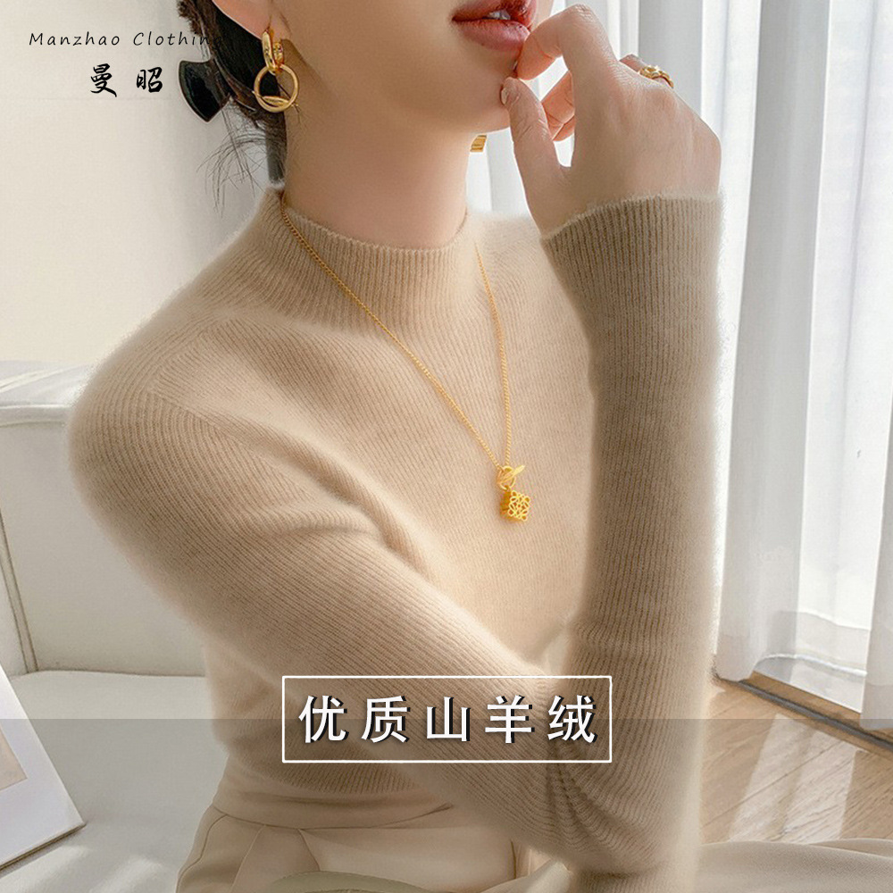 シームレス半高襟2024カシミヤ秋冬シンプルな修身上着女性のセーターニットウールのシャツ