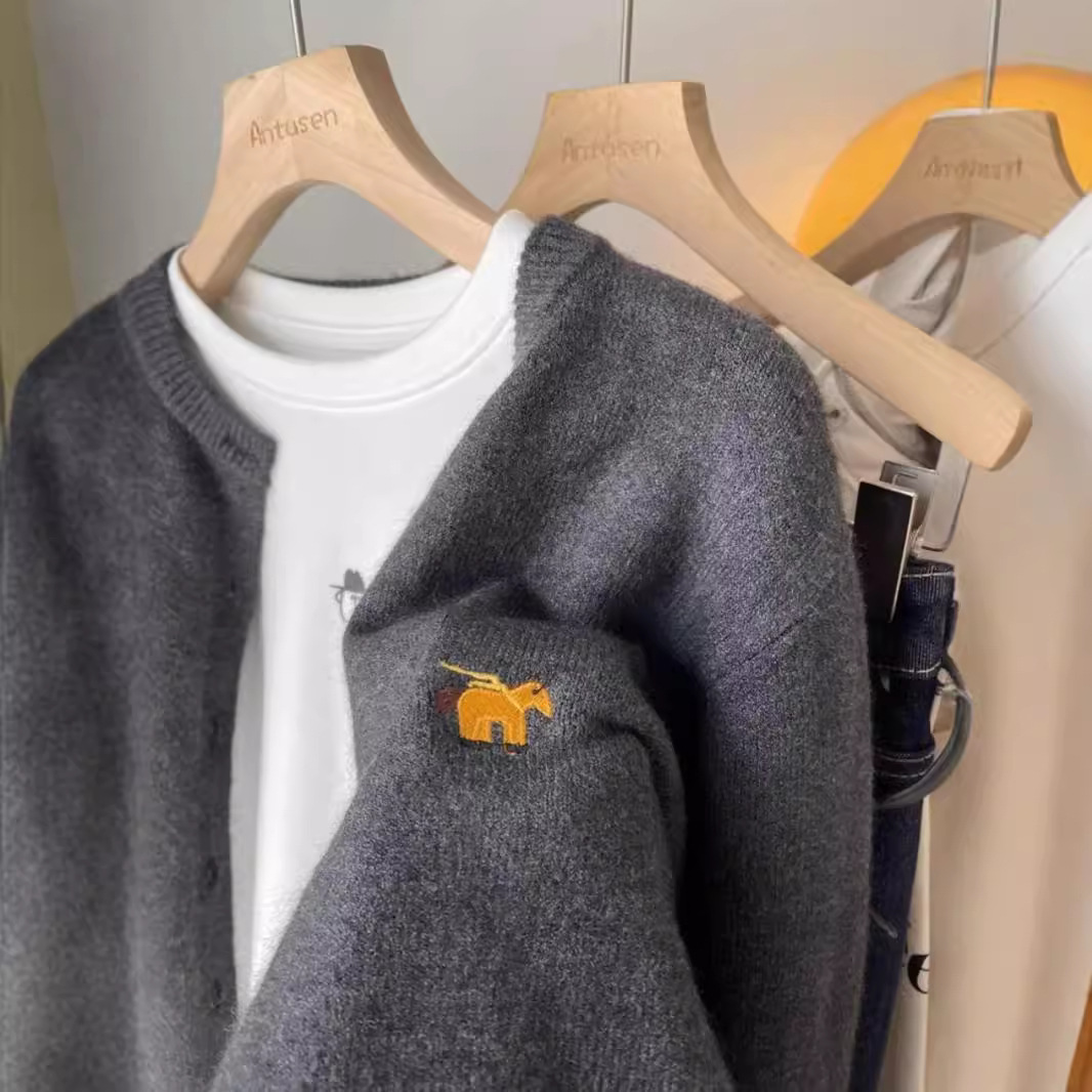 2024早秋のカシミヤカーディガンの女性コートの丸首のセーターの薄いタイプの刺繍のウールのセーターのカジュアルなニットの上着