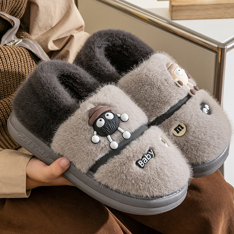 儿童棉拖鞋男大童冬季新款室内家居家保暖中大男童小孩包跟毛拖鞋
