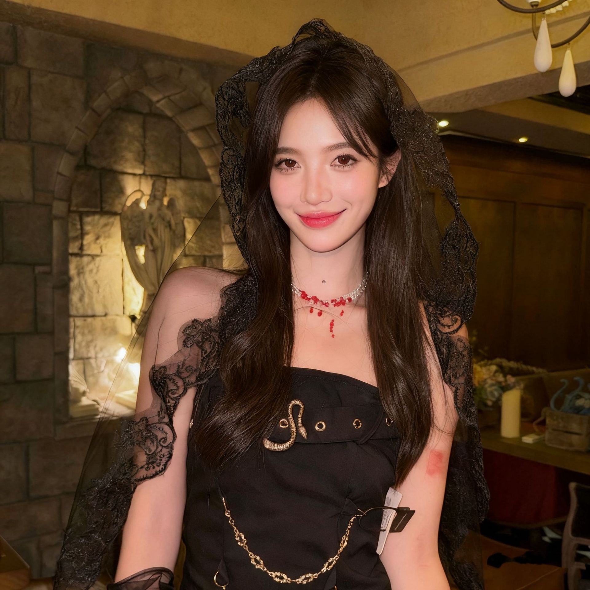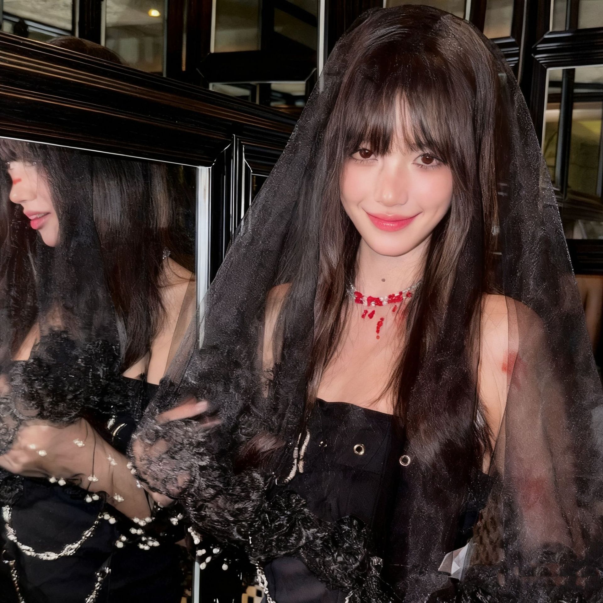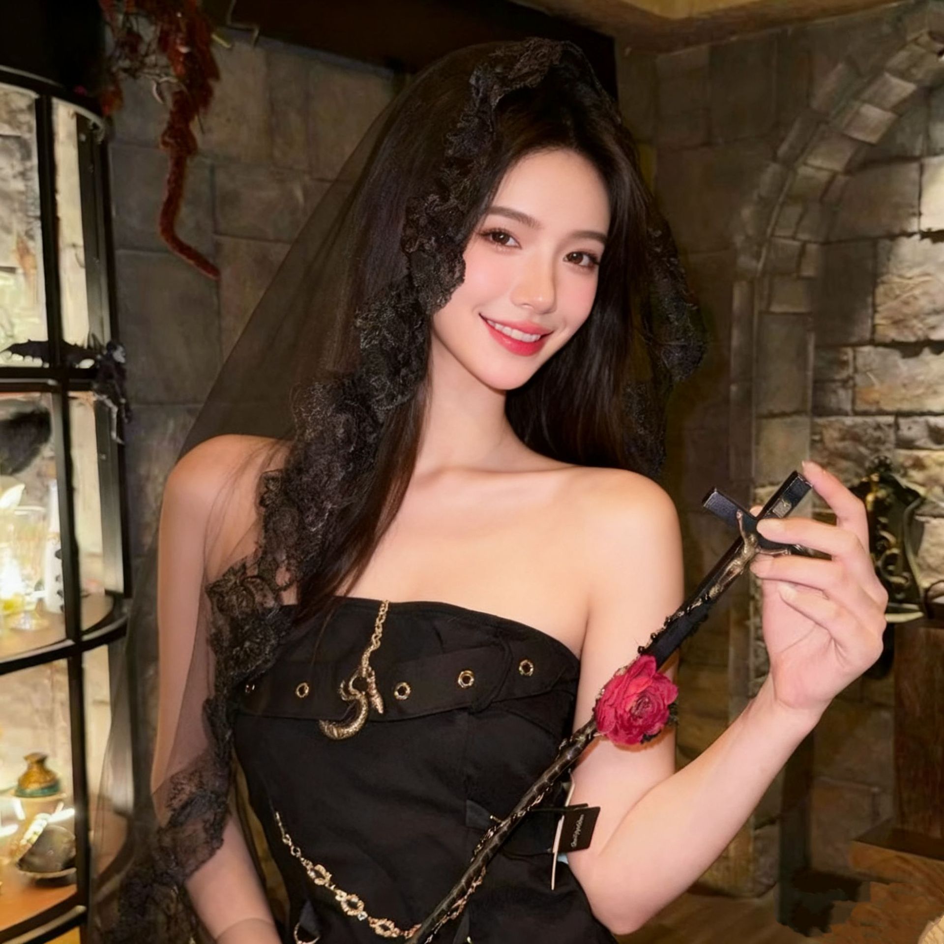 万圣节装扮头纱暗黑新娘领证登记头饰cos蕾丝花边女派对网红拍照