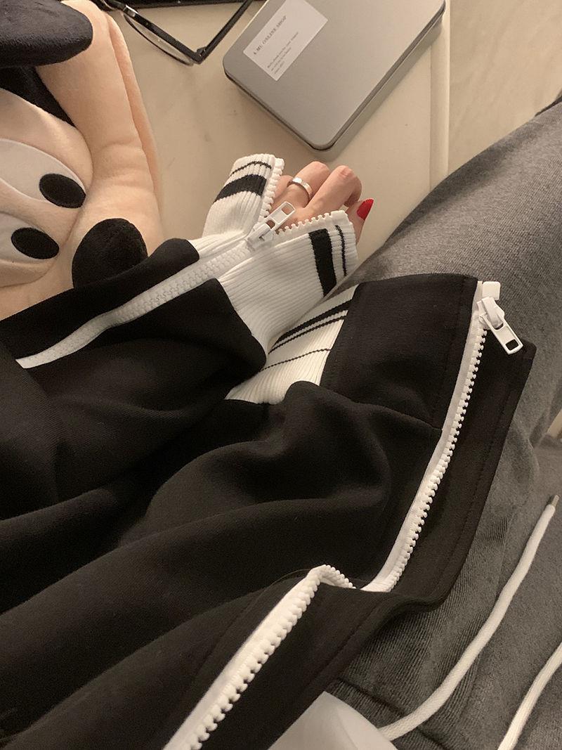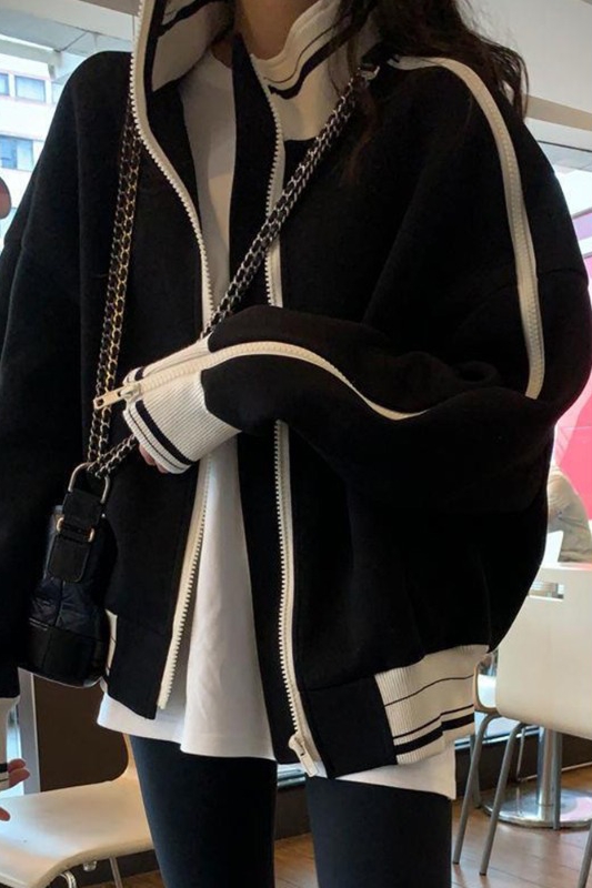 德绒加厚感立领长袖卫衣外套女春秋季保暖双拉链气质开衫内搭上衣