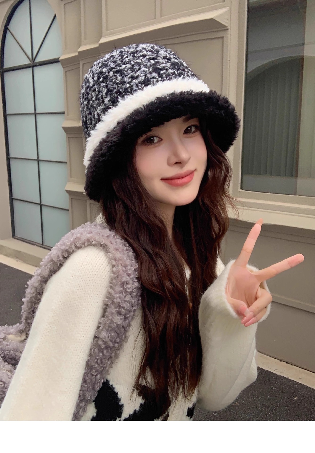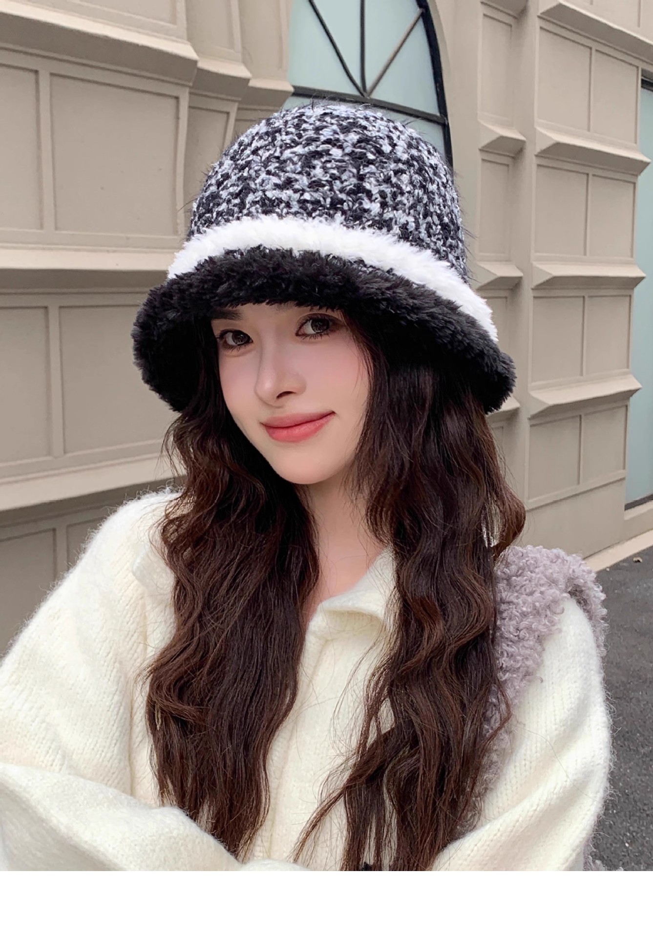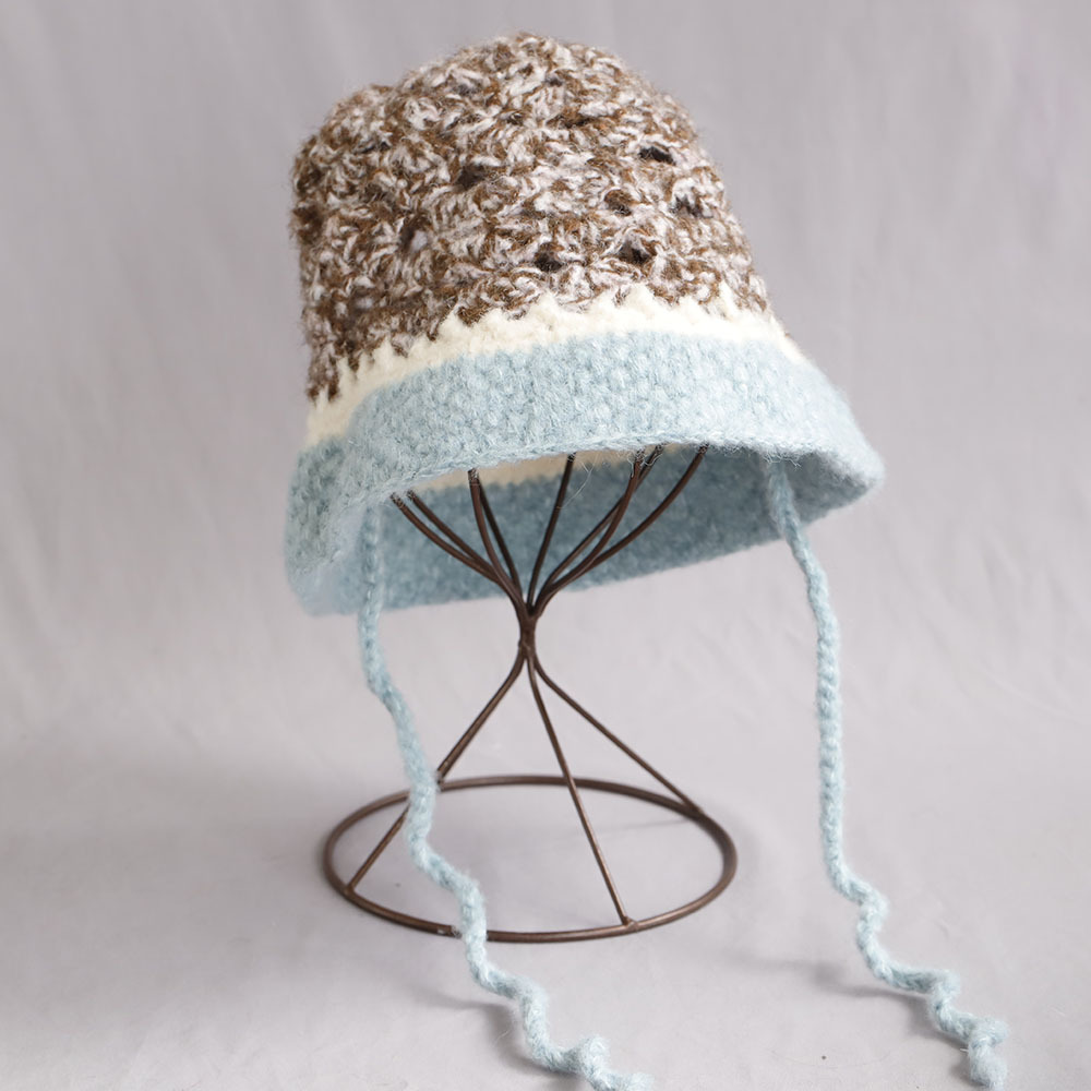 秋冬针织拼色盆帽休闲气质素雅高级感水桶帽保暖防寒显脸小毛线帽
