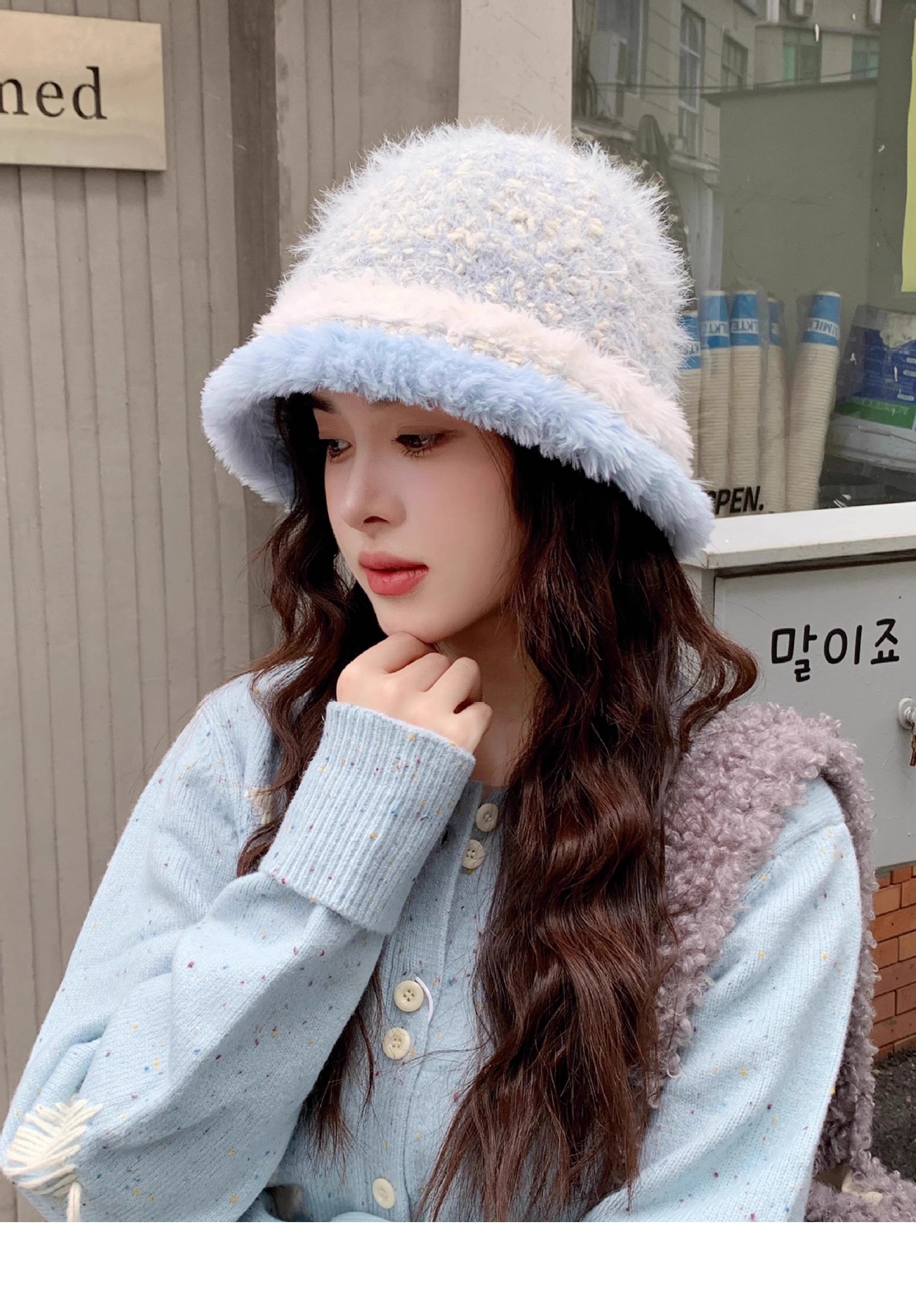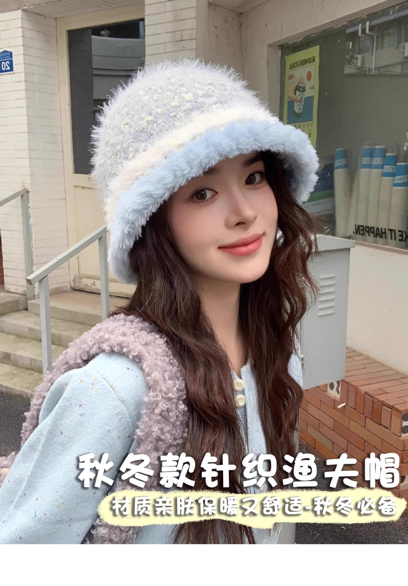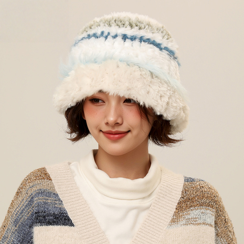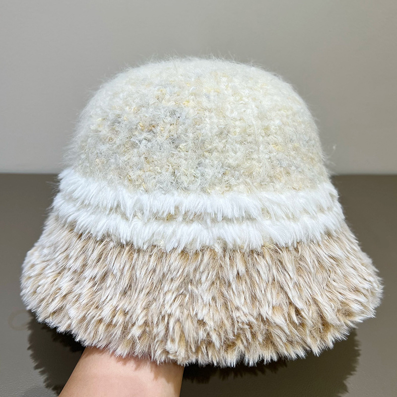 甜美梦幻毛绒混彩针织渔夫帽子女生秋冬季保暖防风防寒盆帽显脸小