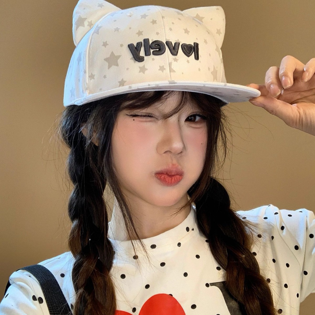 小众搞怪新款星星可爱猫猫耳朵卡通动漫平檐可调节帽夏季百搭帽子
