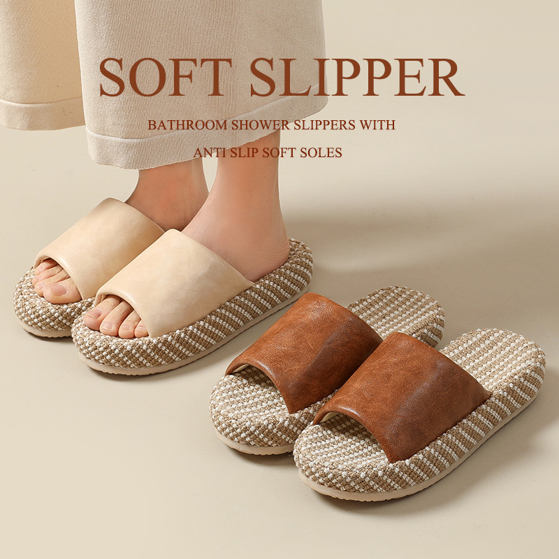 高級レザースリッパ リネン 夏 レディース 綿麻 吸汗消臭 四季兼用 家庭用 室内床 厚底 滑り止め メンズ