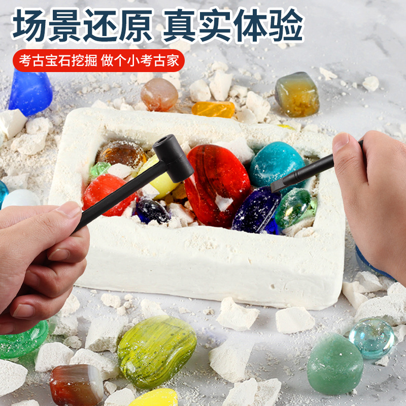 考古掘削玩具恐竜の卵が宝石を掘って化石を叩いて宝探しをします。