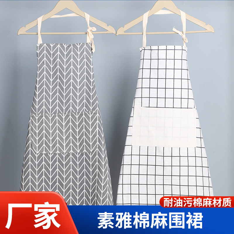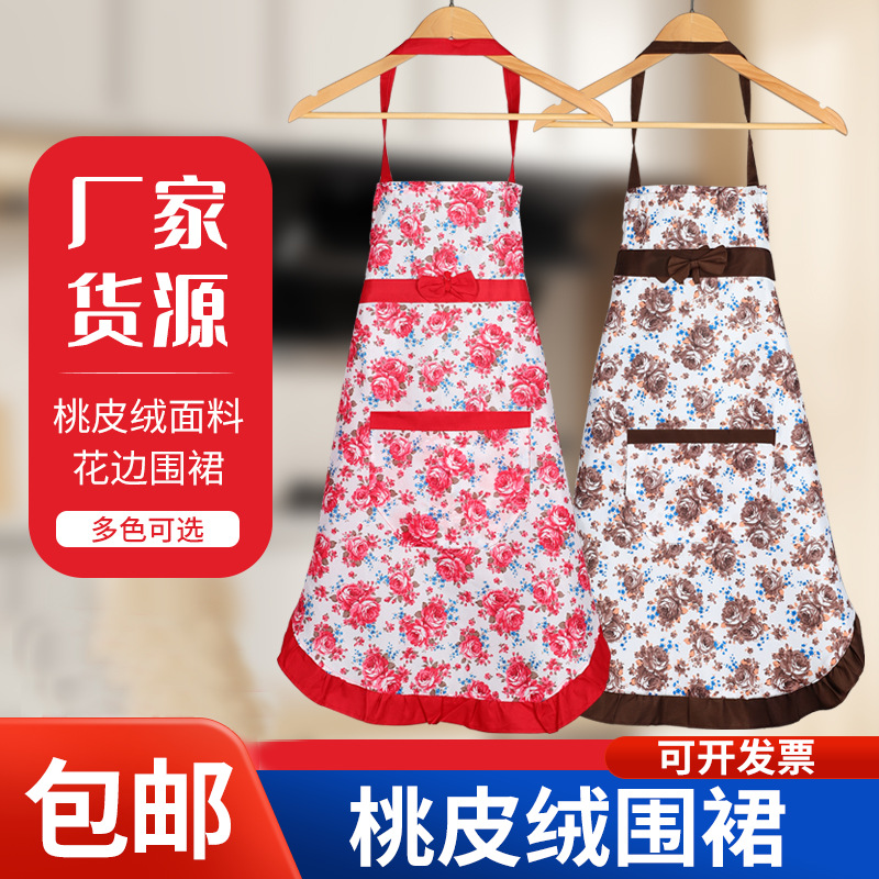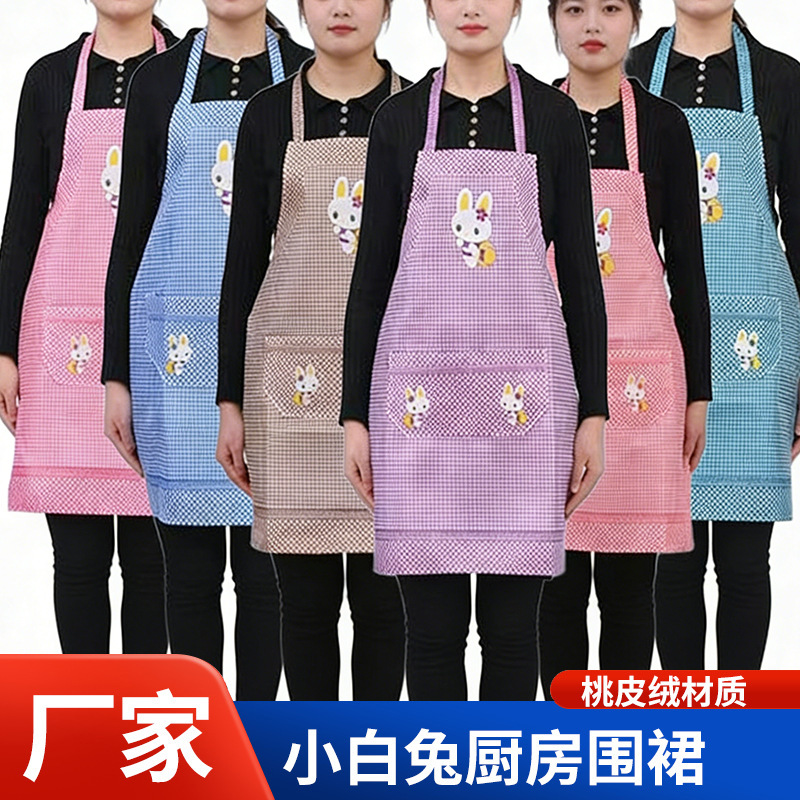 メーカーの白兎エプロン首印字ロゴ家庭広告桃皮パイルエプロン飲食キッチンエプロン卸売り
