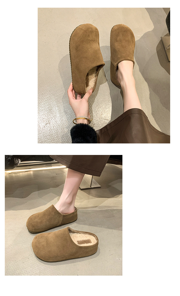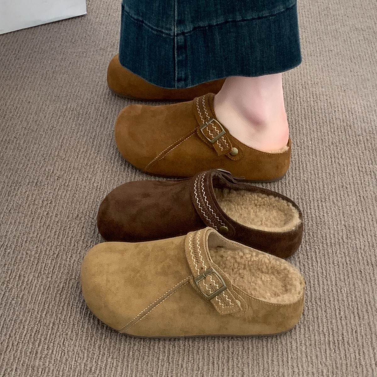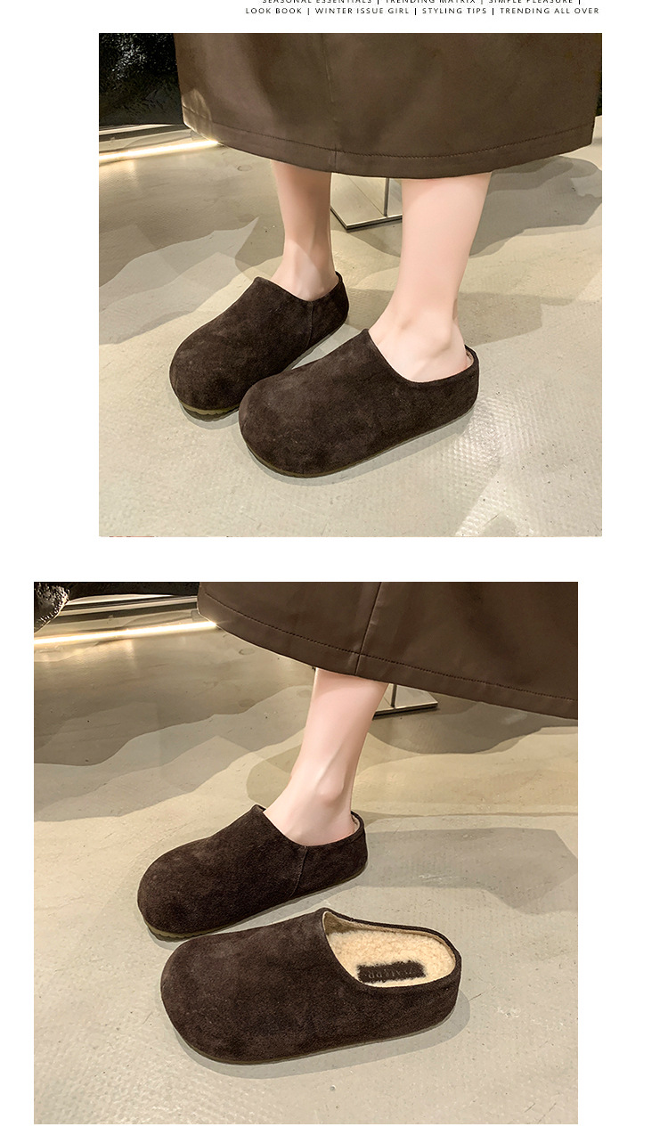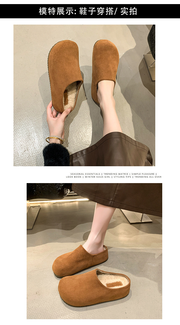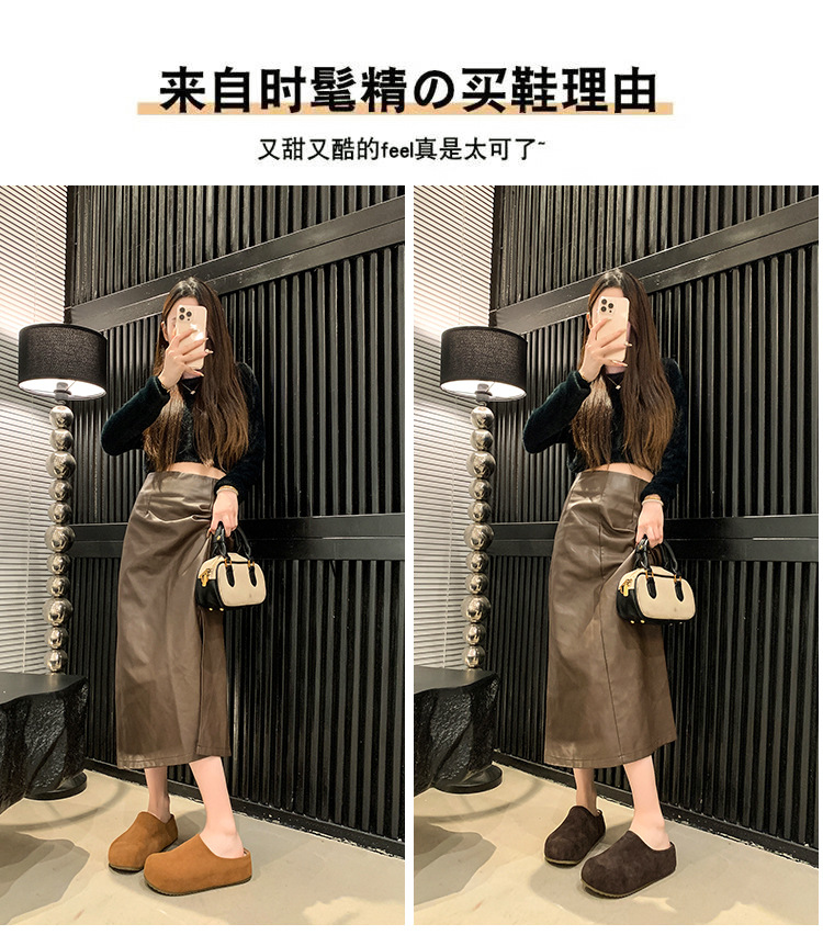 牛革版~厚底包頭ハーフスリッパ レディース 2025年秋冬新作 裏起毛 ハーフスリッパ ワンステップ ボーケンシューズ