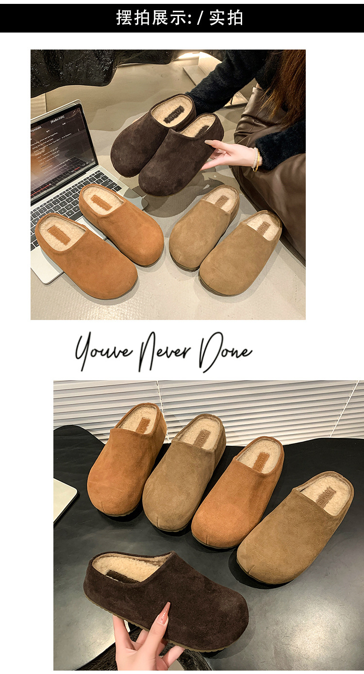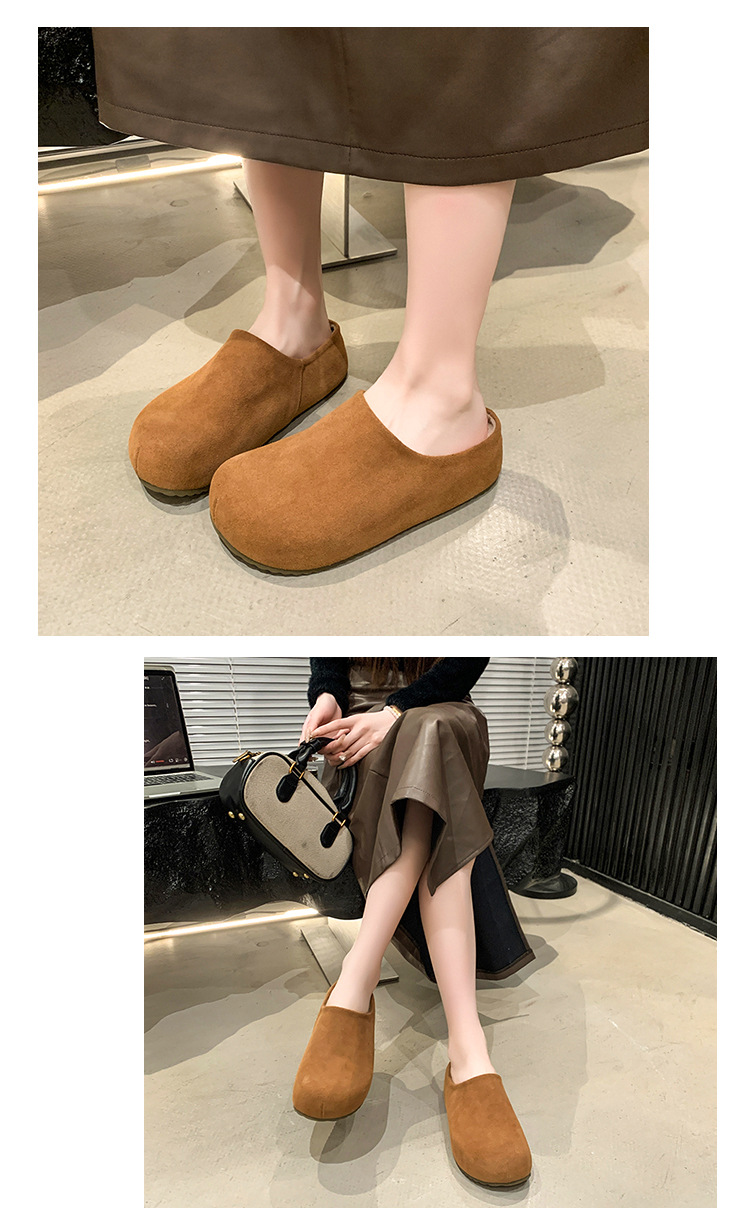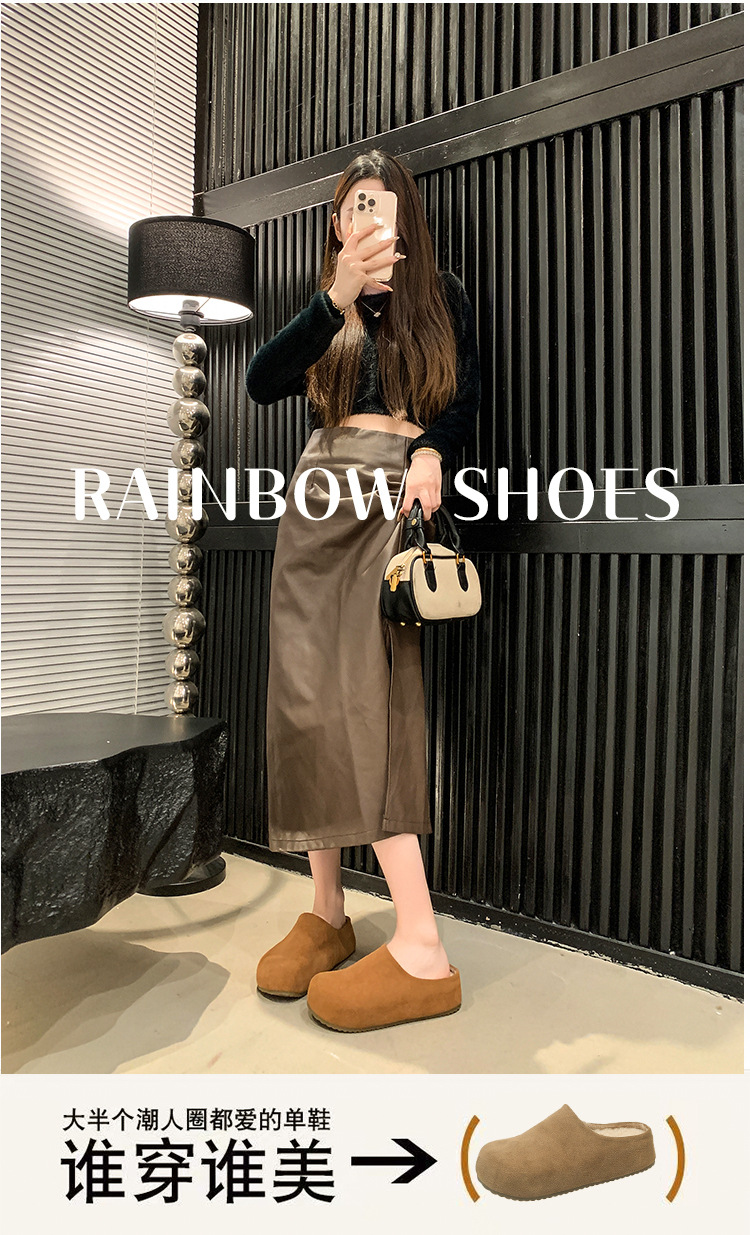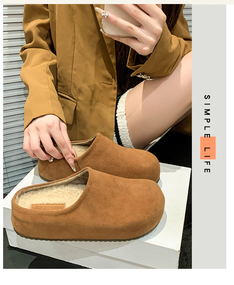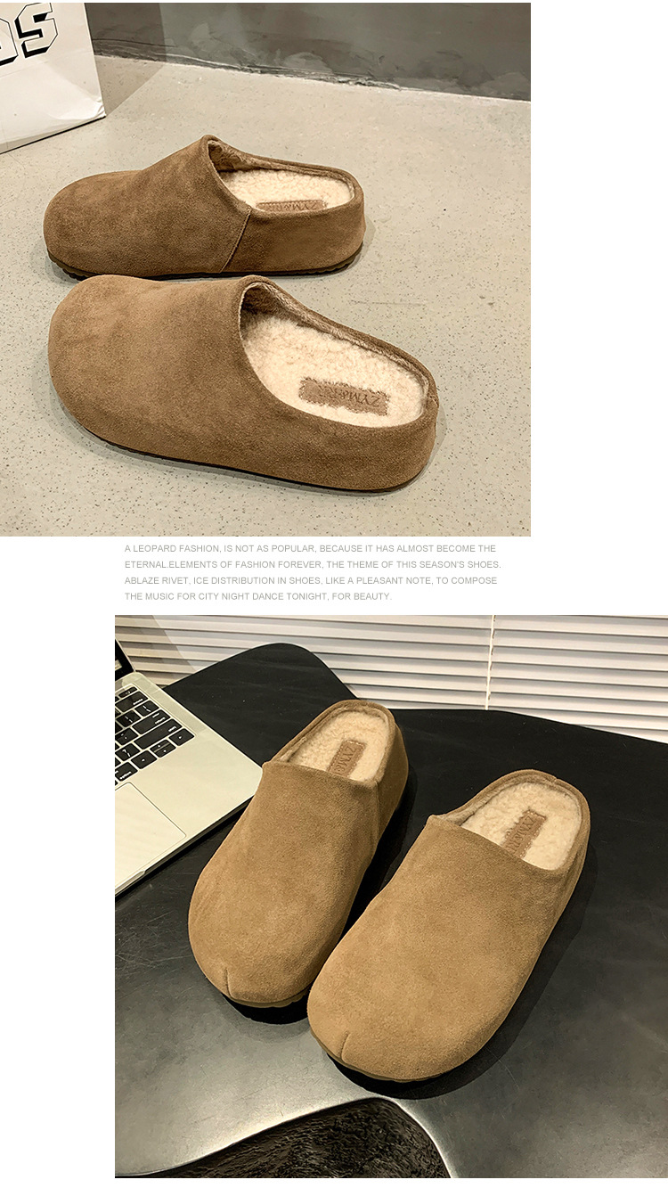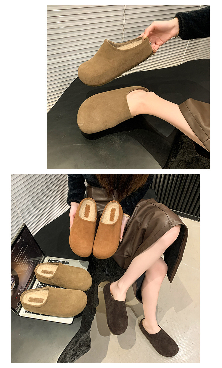 牛革版~厚底包頭ハーフスリッパ レディース 2025年秋冬新作 裏起毛 ハーフスリッパ ワンステップ ボーケンシューズ