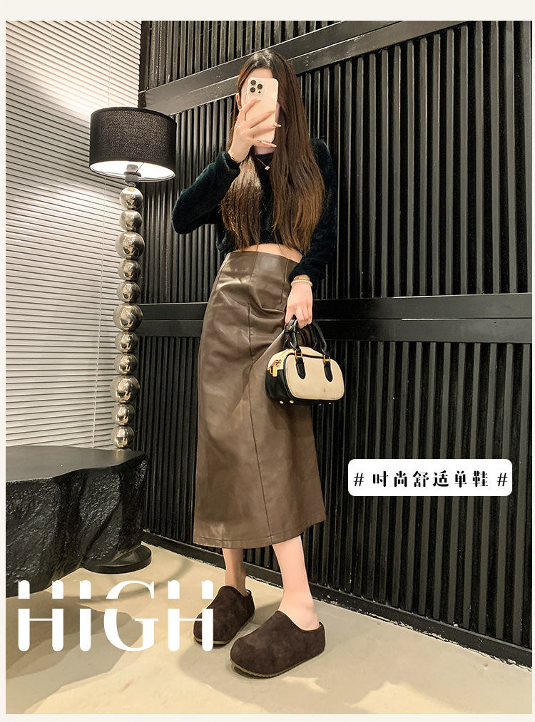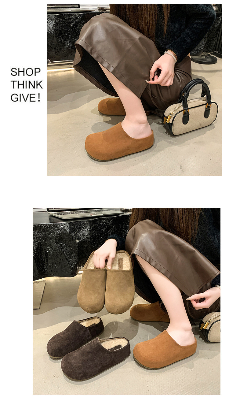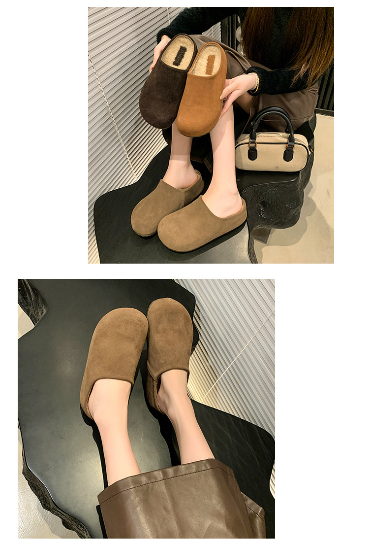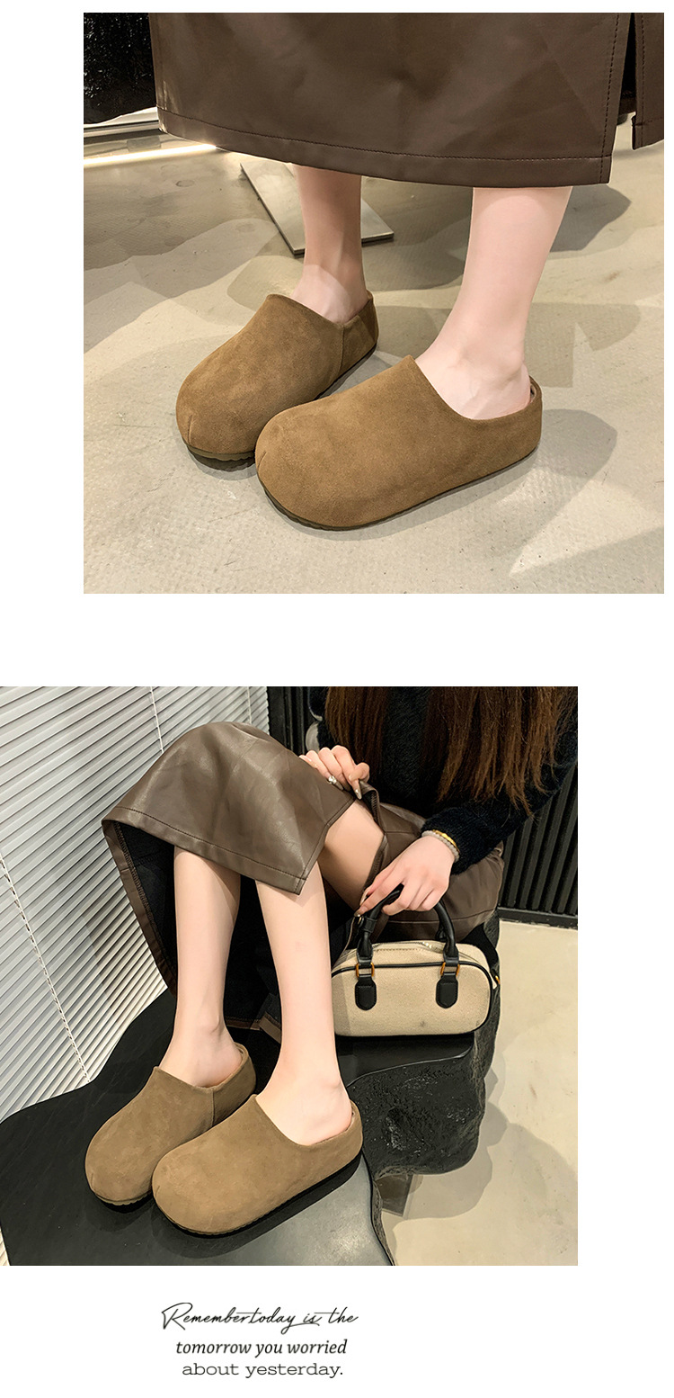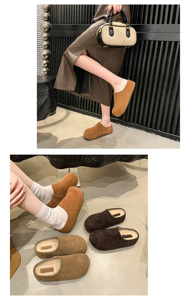 牛革版~厚底包頭ハーフスリッパ レディース 2025年秋冬新作 裏起毛 ハーフスリッパ ワンステップ ボーケンシューズ