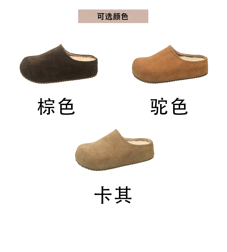 厚底勃肯鞋女2025秋冬新款加绒一脚蹬包头半拖鞋外穿毛毛雪地棉拖