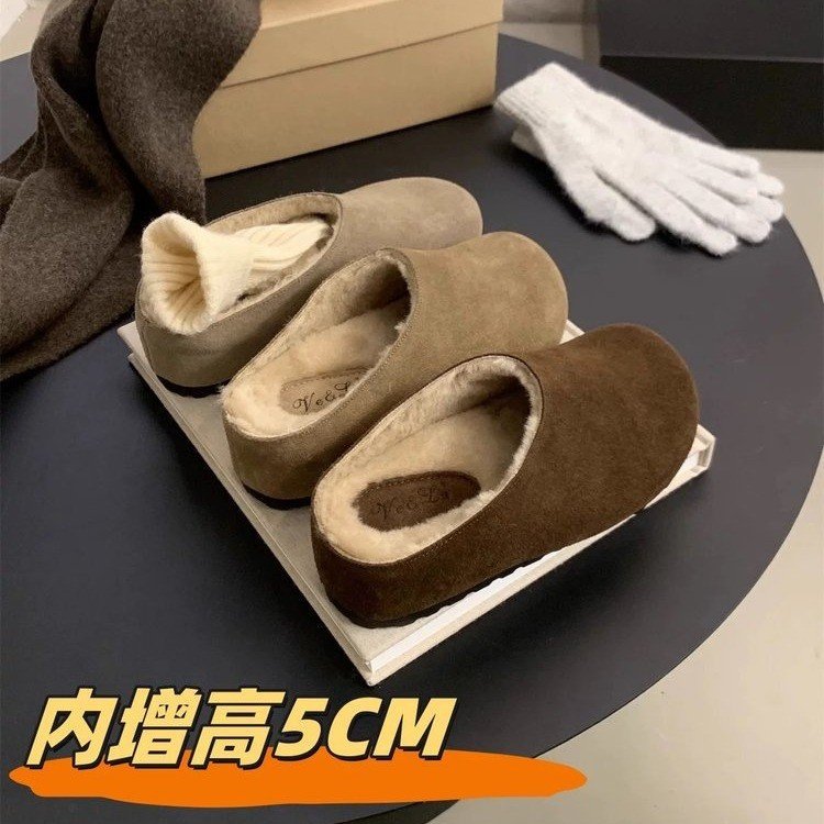 厚底内增高加绒勃肯鞋包头半拖鞋女外穿2025秋冬新款两穿博肯单鞋