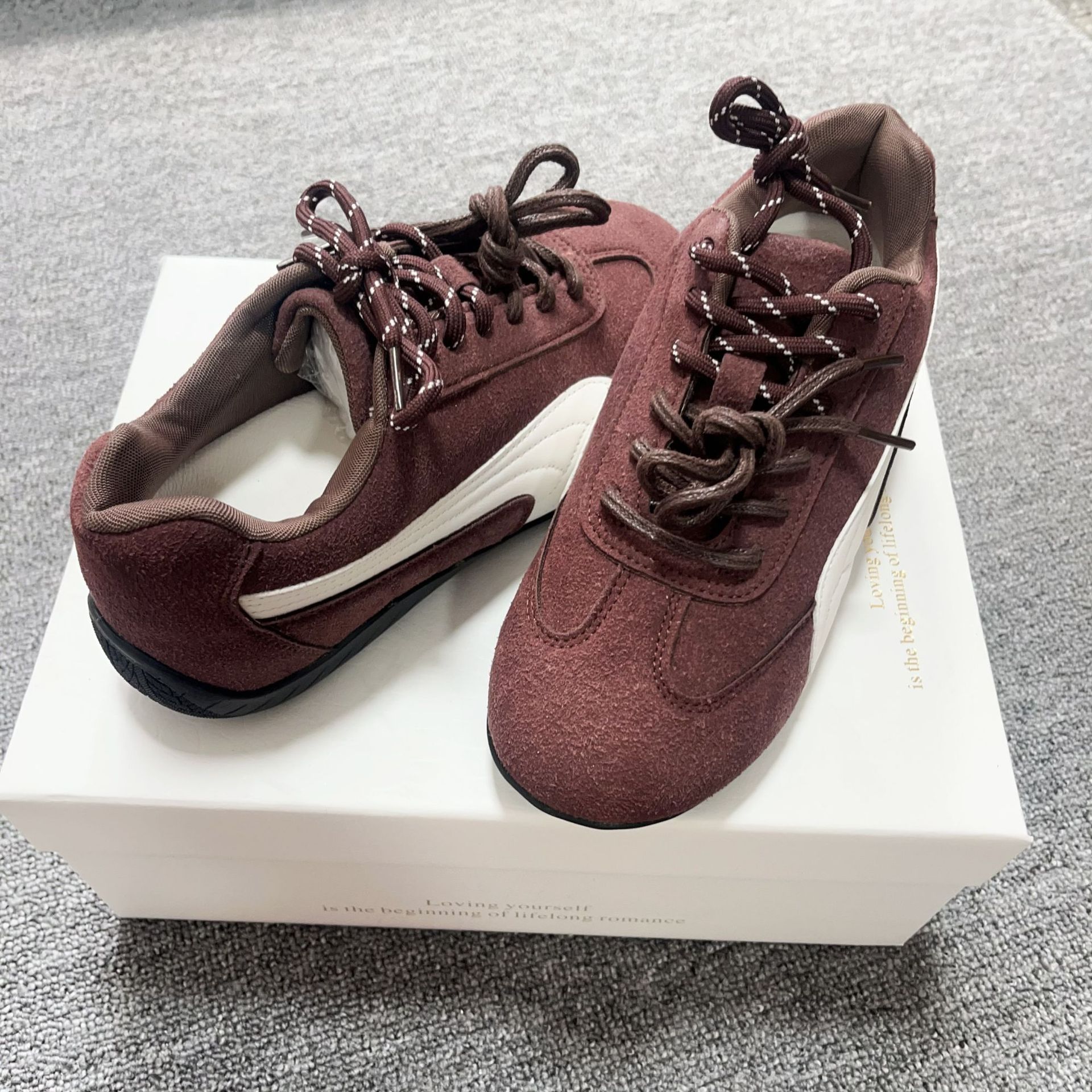 本革のレトロな柔らかい底の徳の訓練の靴の女性の2025年の秋冬の新型の内はレジャーの運動の阿甘靴の板の靴を高めます。