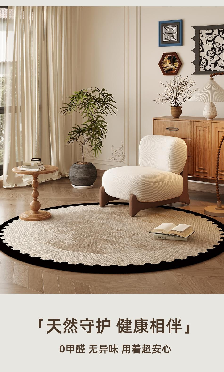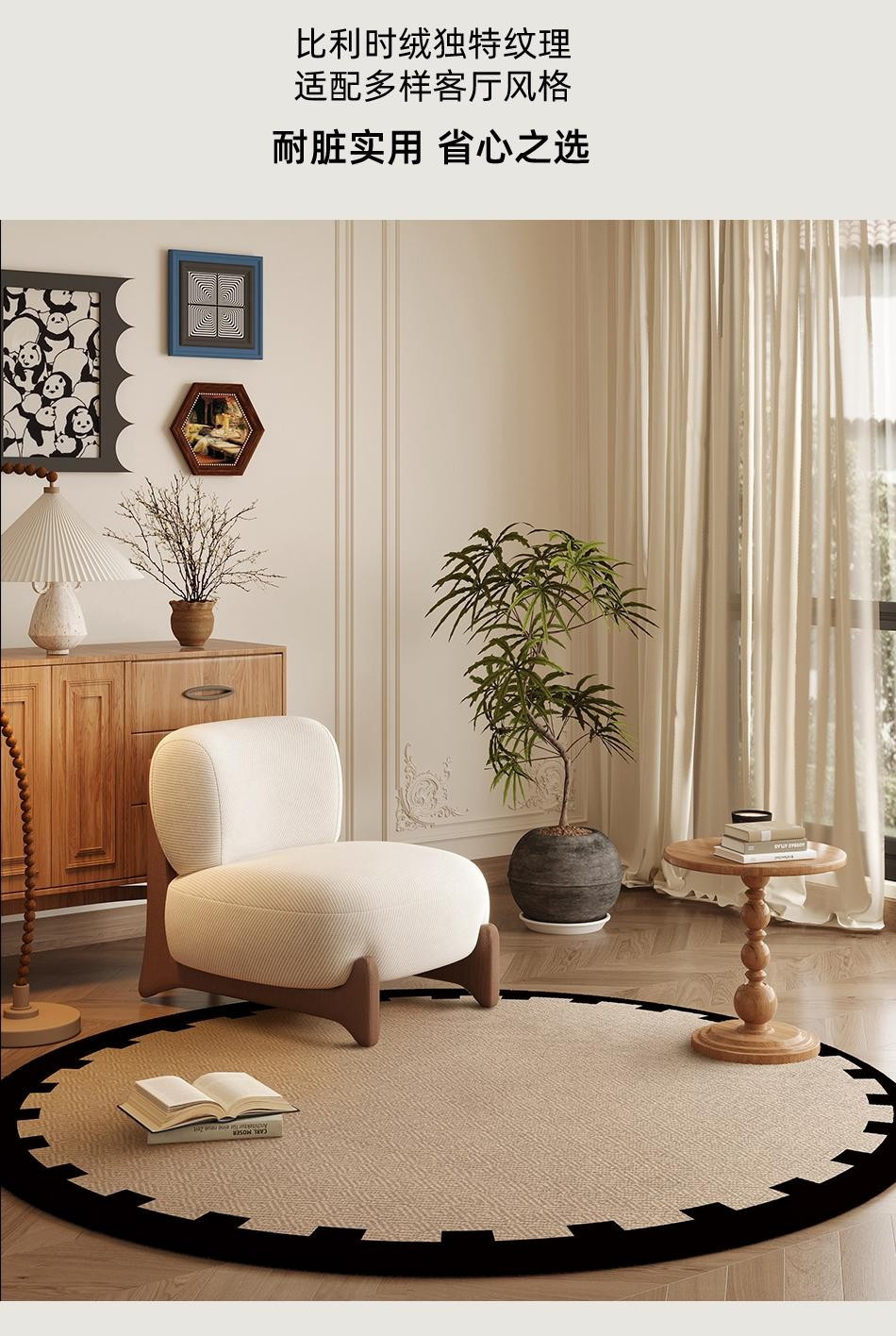 圆形地毯客厅卧室床边中古风2025新款法式复古衣帽间椅子摇椅地垫