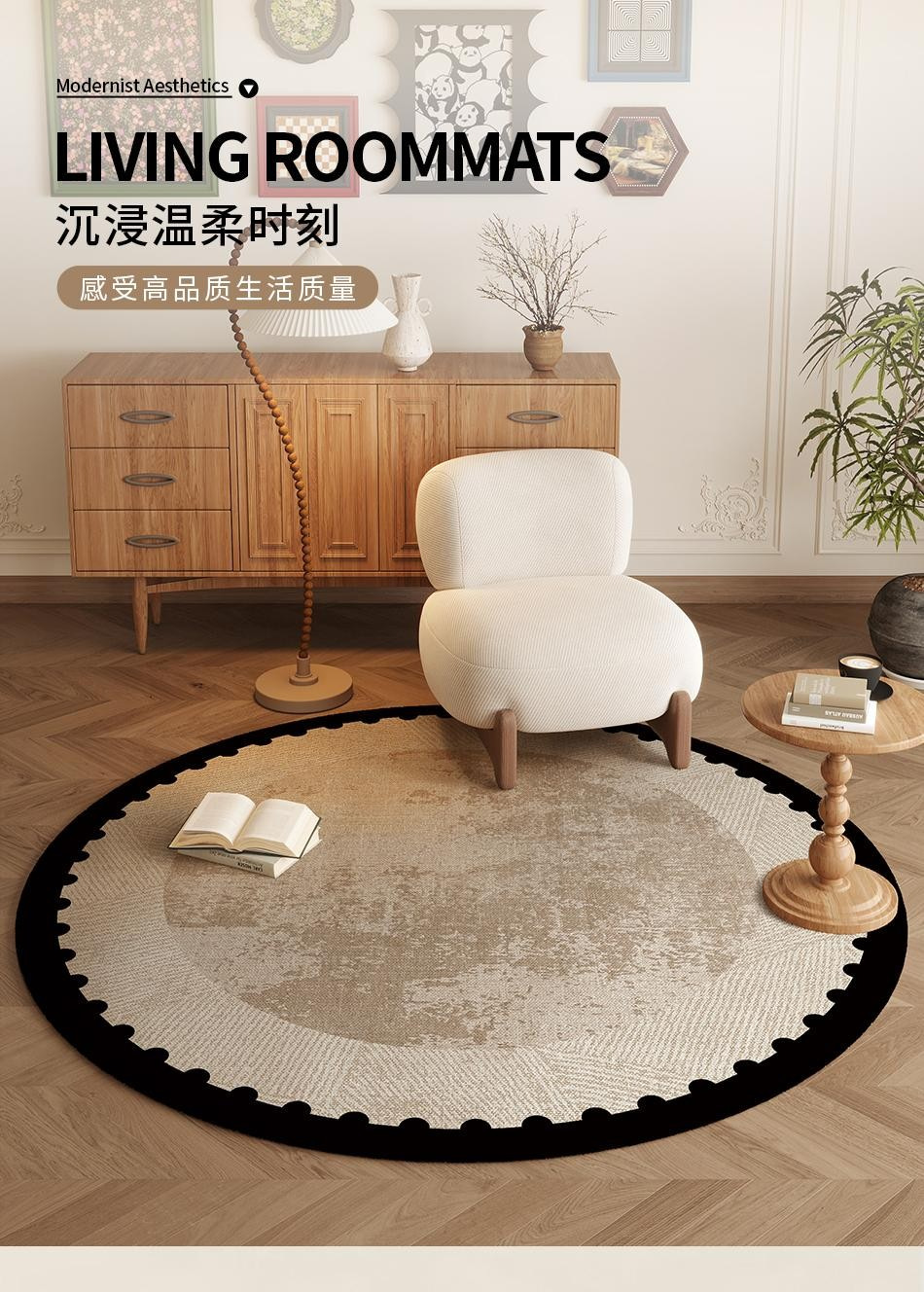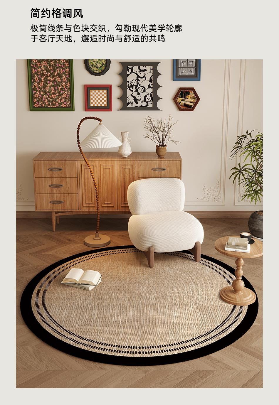 高级感圆形地毯现代客厅沙发茶几毯书房转椅垫摇椅垫卧室床边地垫