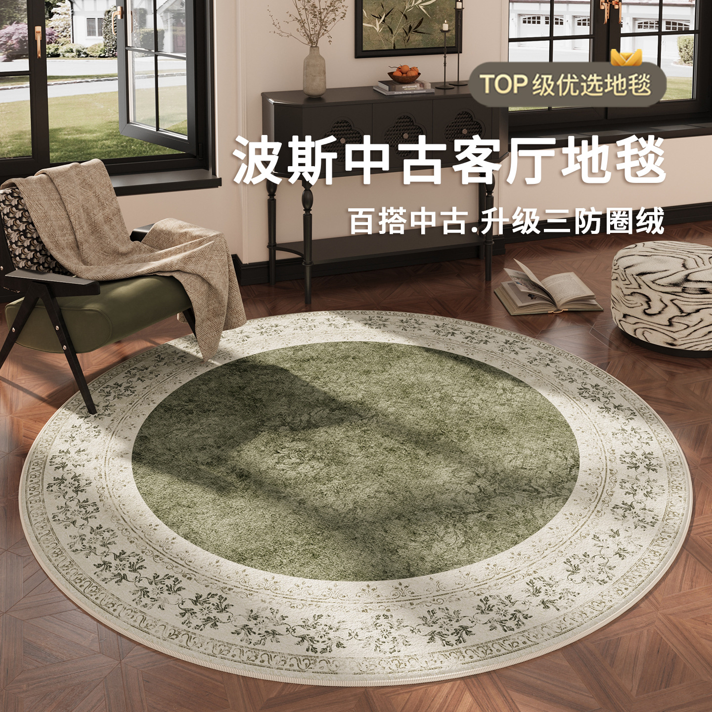 地毯客厅圆形中古法式电脑椅复古地毯卧室高级梳妆台茶几沙发地垫
