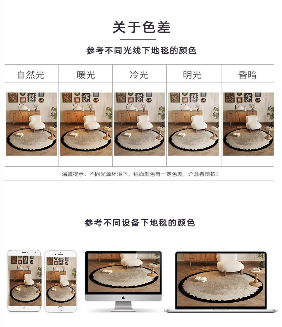 ラウンドカーペット寝室ベッドサイドブランケットリビングソファパソコン回転椅子化粧椅子足マット写真撮影毛布书斎家庭用