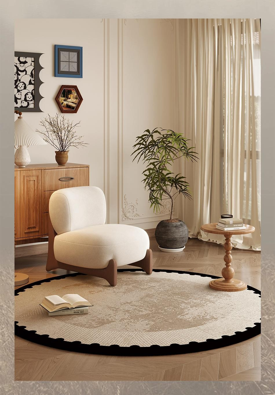 円形じゅうたん寝室客間2025新型高級感フード間床マットクリーム風書斎ソファー椅子マット